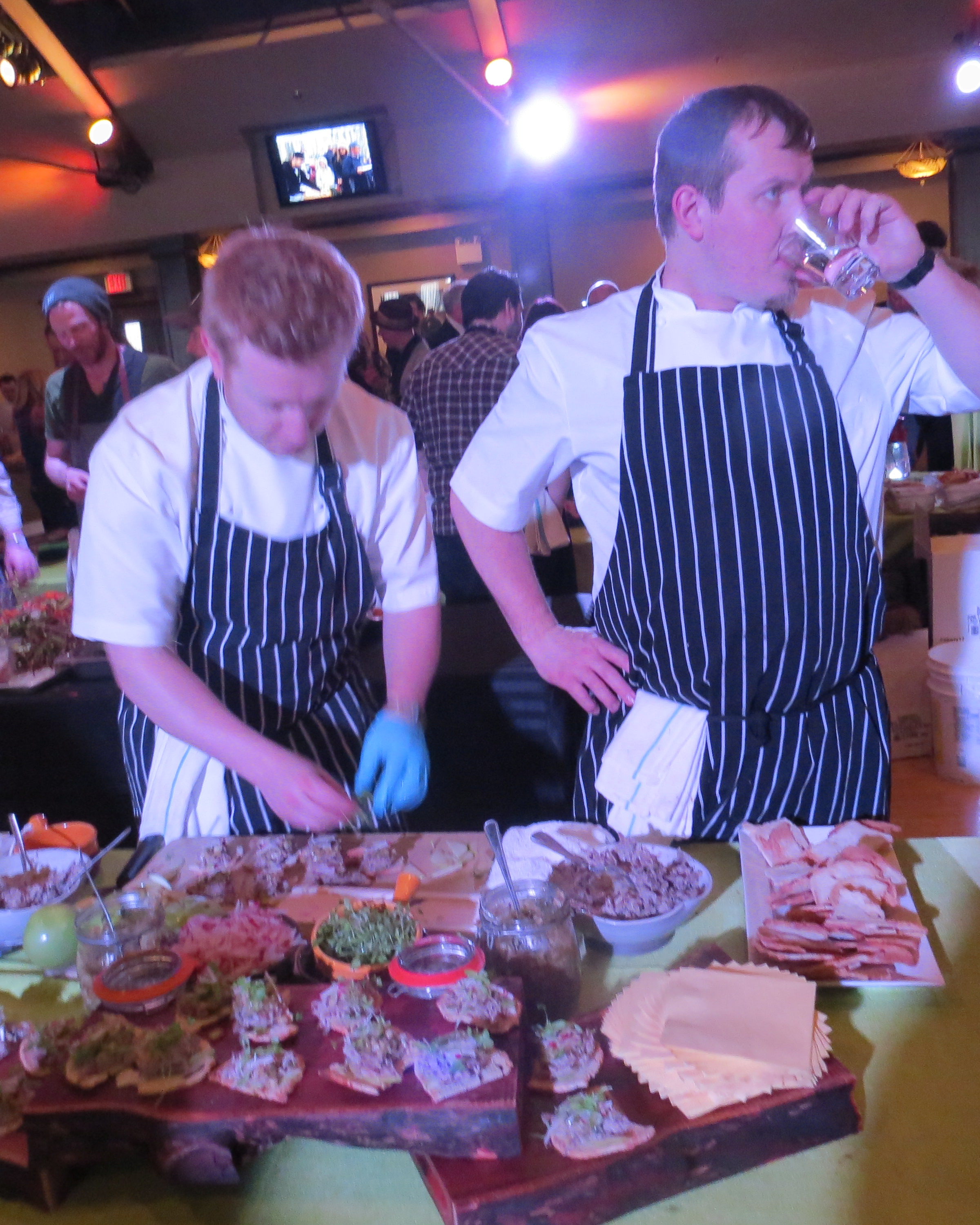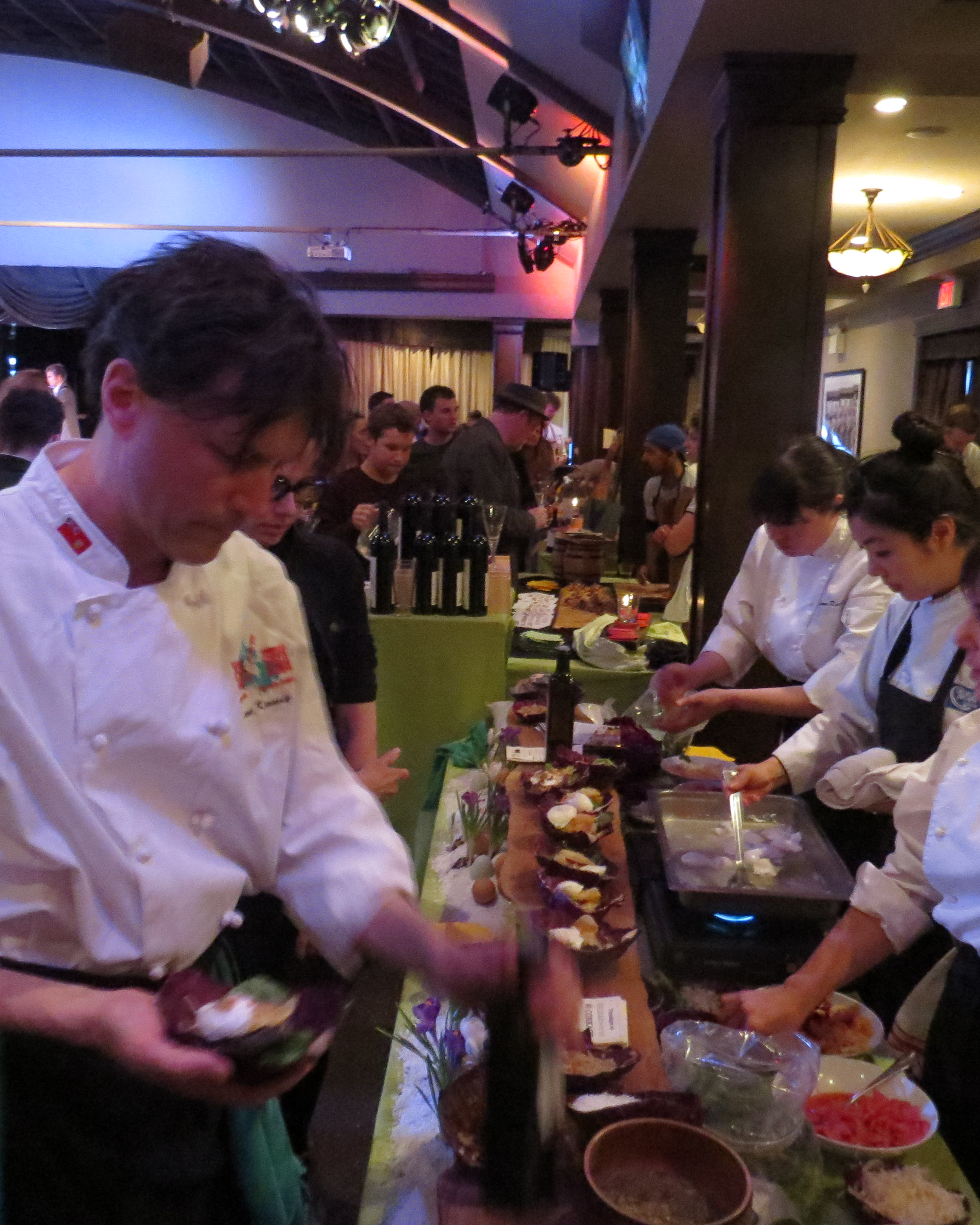 Spring Thaw at the beautiful Palais Royale showcasing 24 chefs, wineries of Ontario and a fine selection of beers. The first of its kind presented by the Canadian Chefs’ Congress and we hope there are plenty more of these events in the coming years. Emcee for the evening was comedian Sandra Shamas and Eigensinn Farm chef Michael Stadtlander. The music was provided by Darren Sigesmund Jazz Quartet who entertained the capacity crowd with their style of upbeat jazz. The view from the backyard was amazing at the Palais Royale. It has been a long cold winter and the “Spring Thaw” warmed alot of hearts with the great combination of food and drinks for the evening.