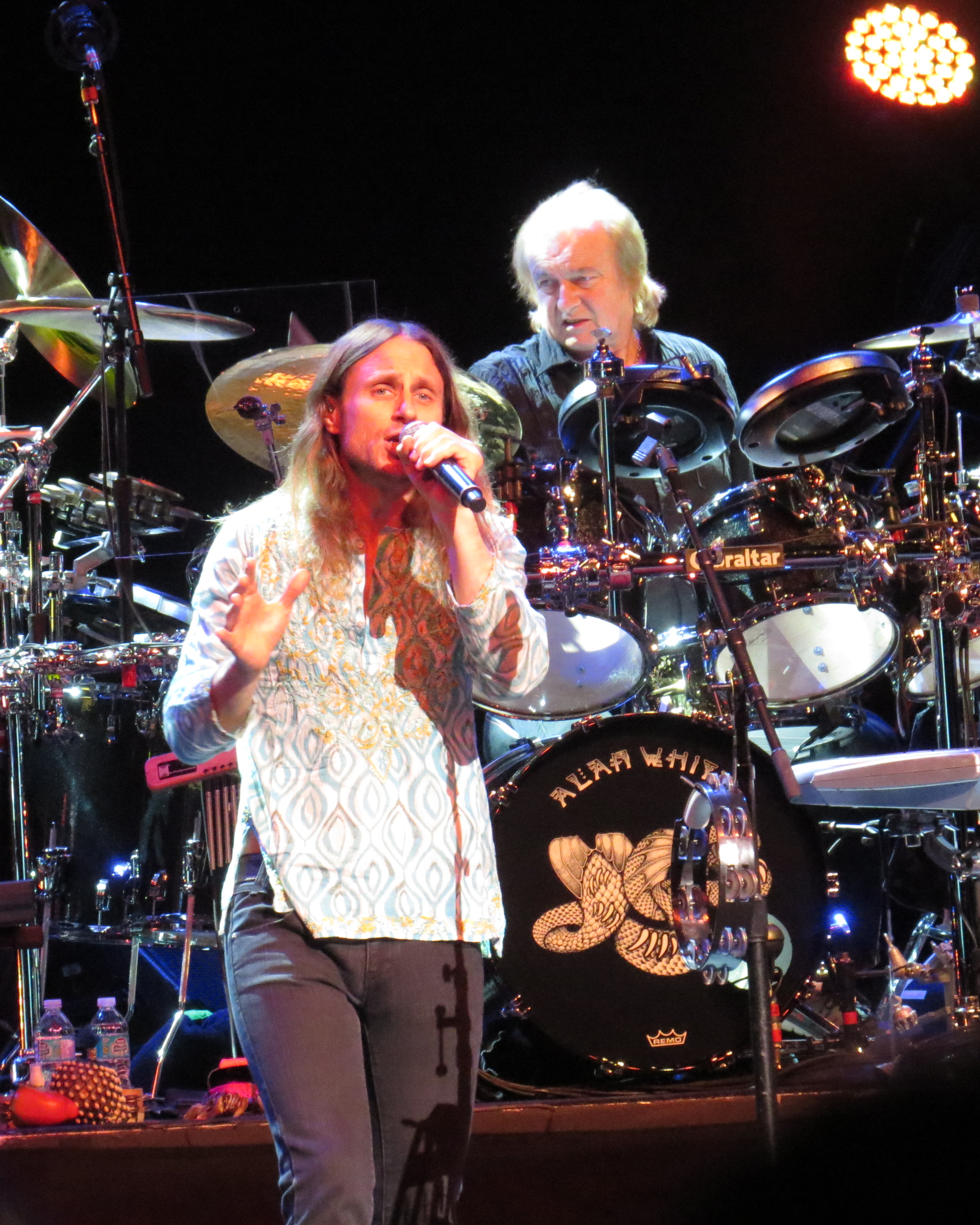 Historical progressive Rock band Yes played the beautiful Hamilton Place hall to a capacity crowd of people from around the world. Before the show started a group of fans were over heard talking about their home country. Fans from the U.S.A.(Rochester)U.K.(London) and across Canada were in the audience for this final concert in Canada before the band traveled to the U.S.A. and then Europe. This tour was comprised of 3 albums played in their entirety : The Yes Album, Going For The One and Close To The Edge. Mainstay vocalist Jon Anderson is not on this tour. But Jon Davidson is the new vocalist who has an uncanny resemblance to a young Jon Anderson and his voice mimics the high vocal talents of the original singer of Yes. The band on this tour consist of Geoff Downes(keyboards),Chris Squire(Bass),Steve Howe(Guitars+keyboard) and Alan White(Percussions) The 3 hour concert with intermission was a true Yes show and somewhat reminds a fan of a Classical concert minus the symphony. It was a fans delight to have all 3 albums played and the standing ovation showed that it was a concert for the true Yes fan. The show ended with one encore -“Roundabout” from the Fragile album. In the U.S.A. they’ll be playing the entire “Fragile” album and their Greatest Hits. After the show it was overheard that a group of fans would be following them to the U.S.A. to experience their “Great HIts tour” Yes has been around since the late 60’s and it doesn’t look like they will be slowing down with their touring. We look forward to their new tour in 2015.