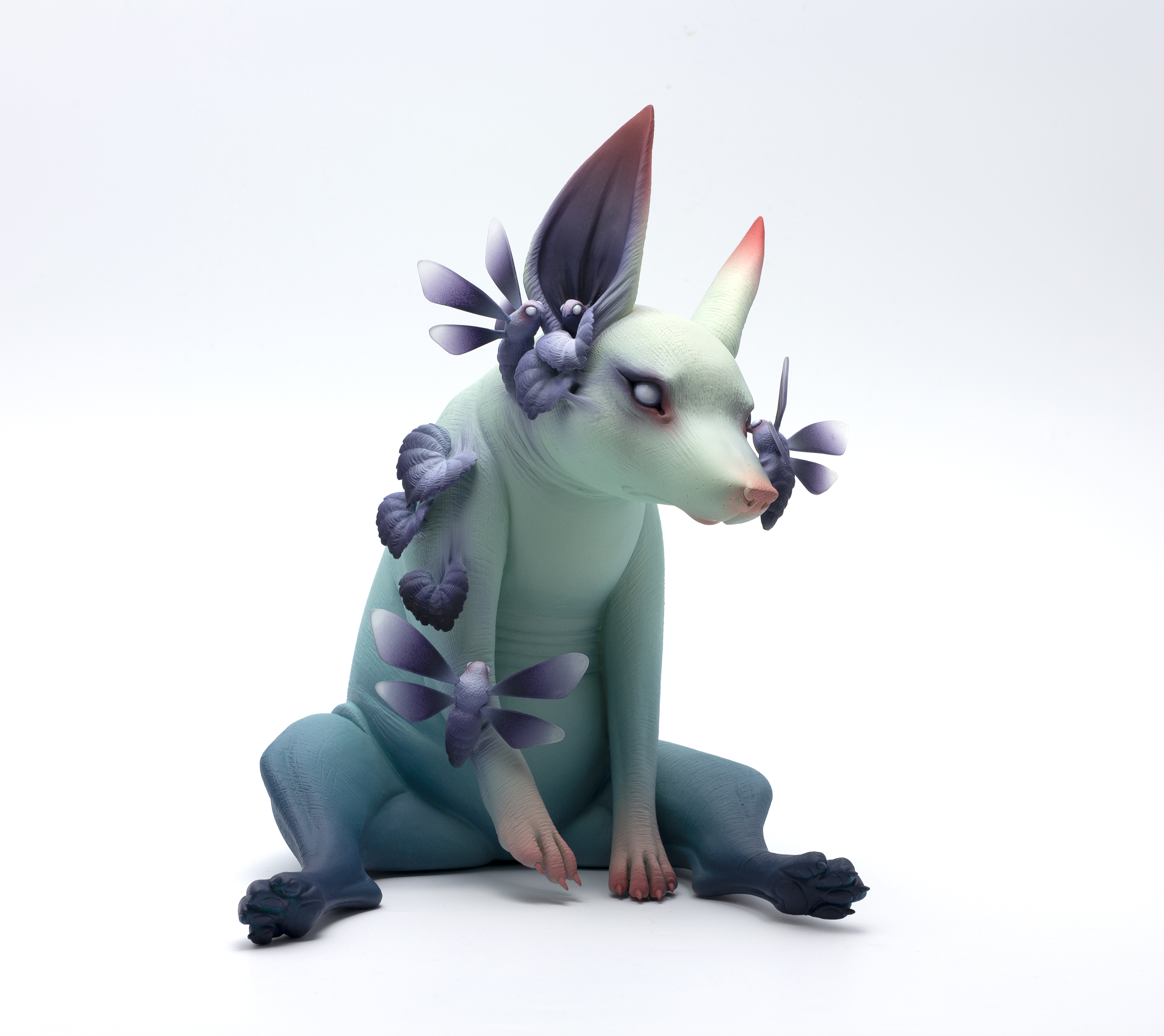 When I was young, my friends ignored and bullied me. As a result, I stayed indoors and watched supernatural movies and animations. They helped me escape from reality and gave me power. These movies showed main characters using magic to turn others into freakish animals and insects. This transformation inspired me to make work that reflected the images that I saw in those movies and animations. I have had an anxious personality since I was a child. I worry about everything, even tiny things. Anxiety drags my mind to the dark side, which is more powerful and intense than my bright side. Sometimes I can’t move forward because I am emotionally paralyzed. I decided to go face-to-face with my anxieties by creating irregular and eerie creatures representing my dark side. As a result, these creatures show my twisted mind as I try to overcome anxiety through my creation.”