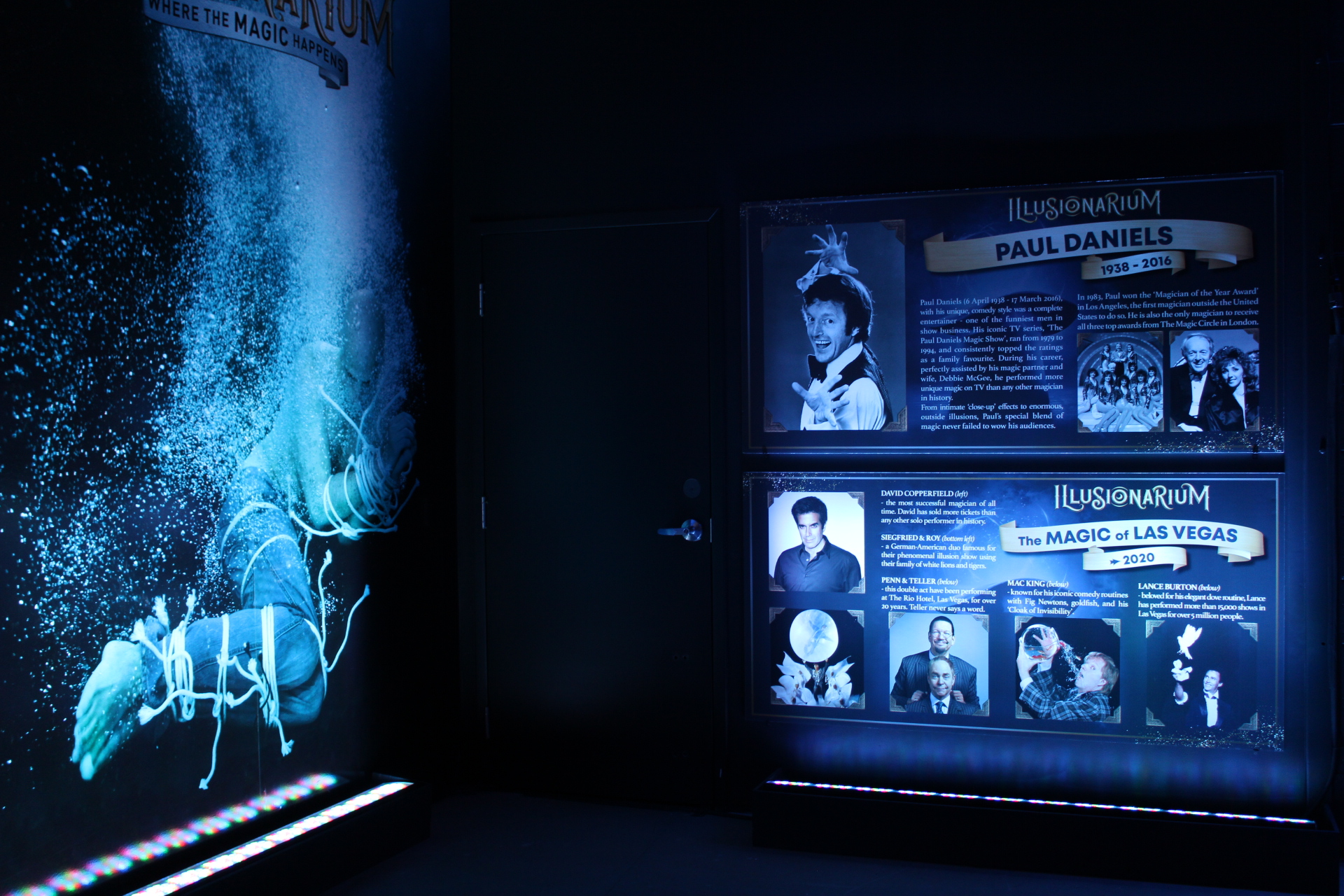 Your visit to Jamie Allan’s Illusionarium starts with a room filled with posters on famous magicians taking you through an immersive history of magic. This sets the mood for your magical tour of illusions. Timed visits of small groups allow for distancing. Groups move from room to room together and there’s lots of designated space to stand or sit during each room’s magic presentation. Optical illusions, card tricks, mind-reading, levitation and vanishings and many more magical tricks have you trying to figure out how it’s done! 3D projections, live magicians and holograms.