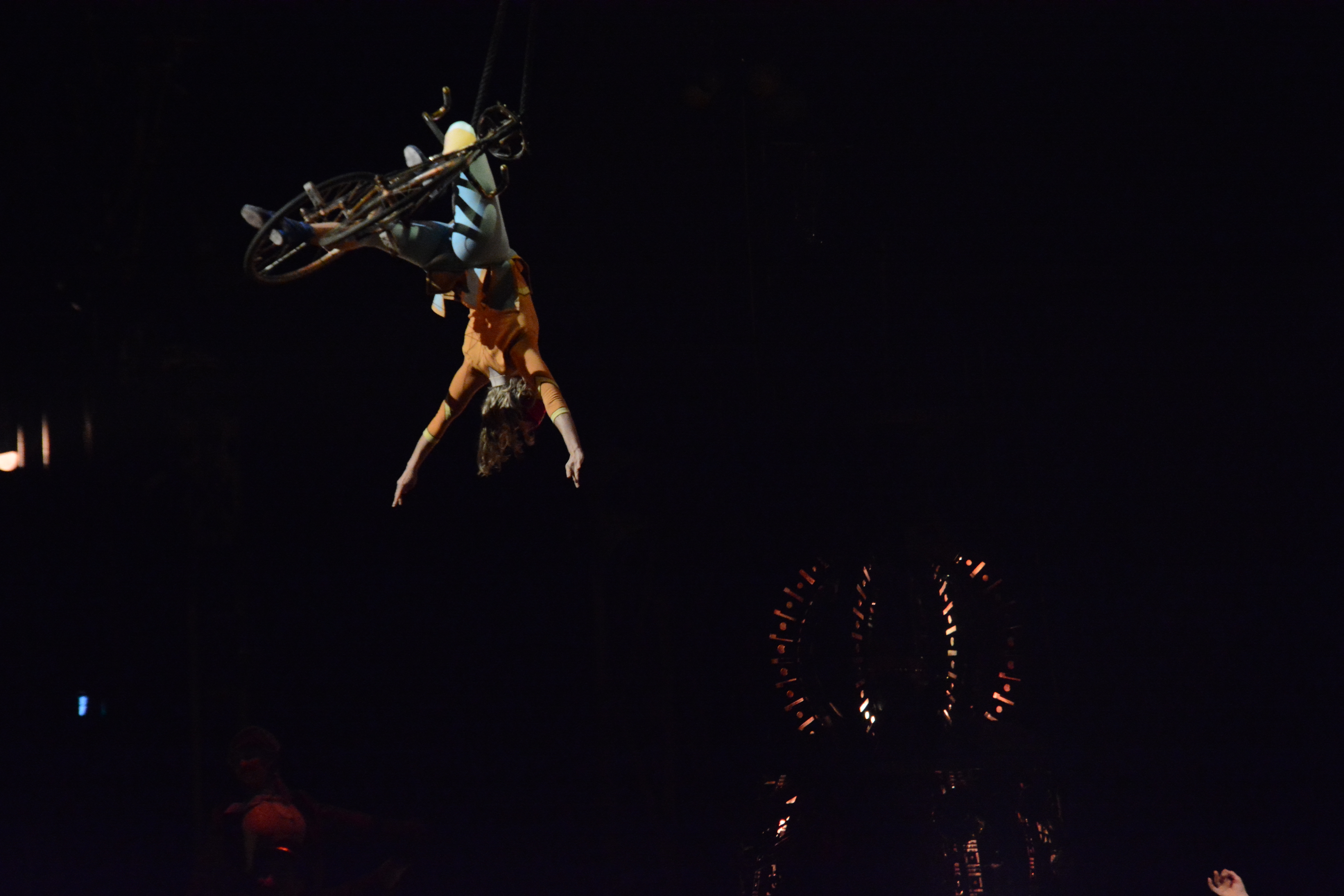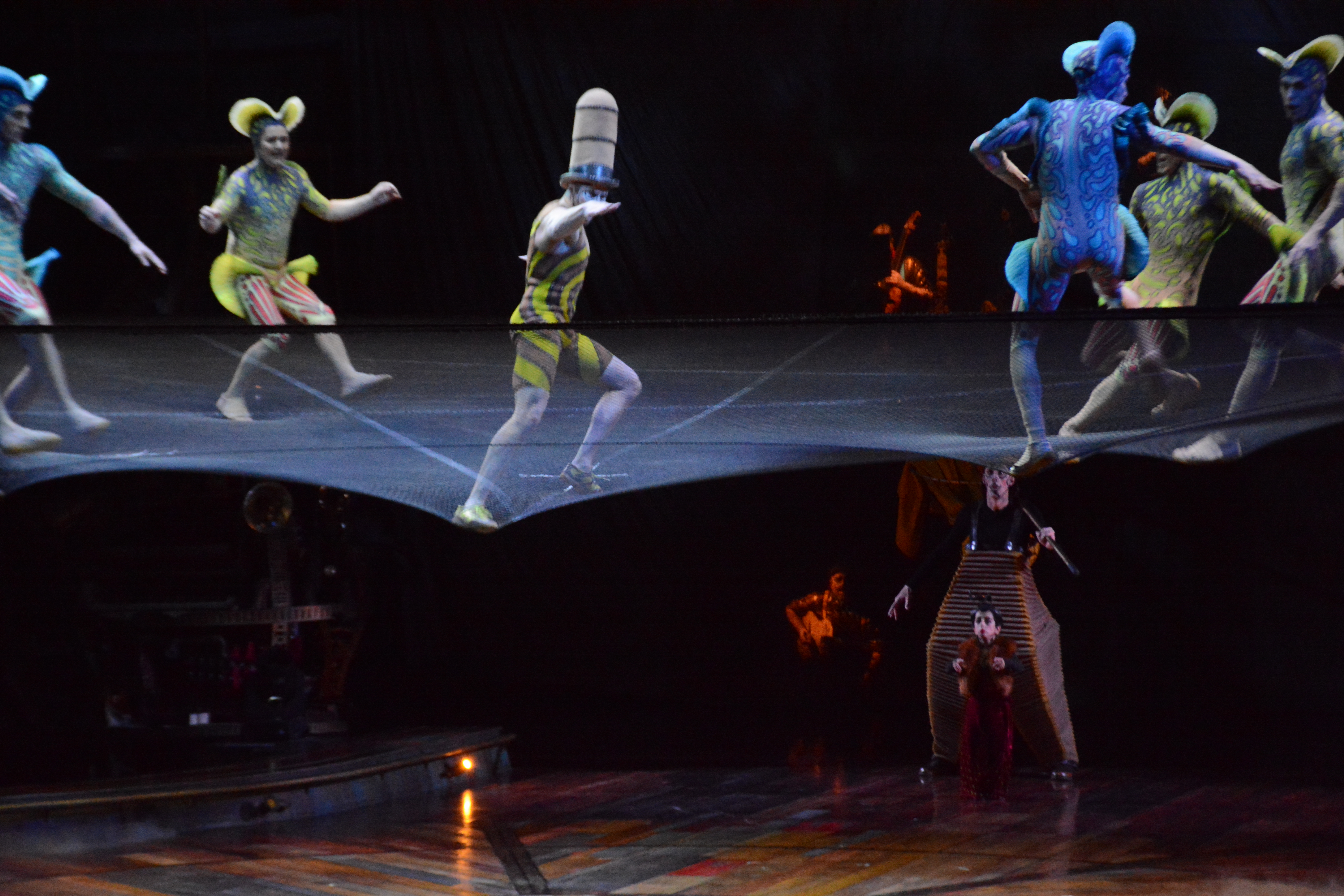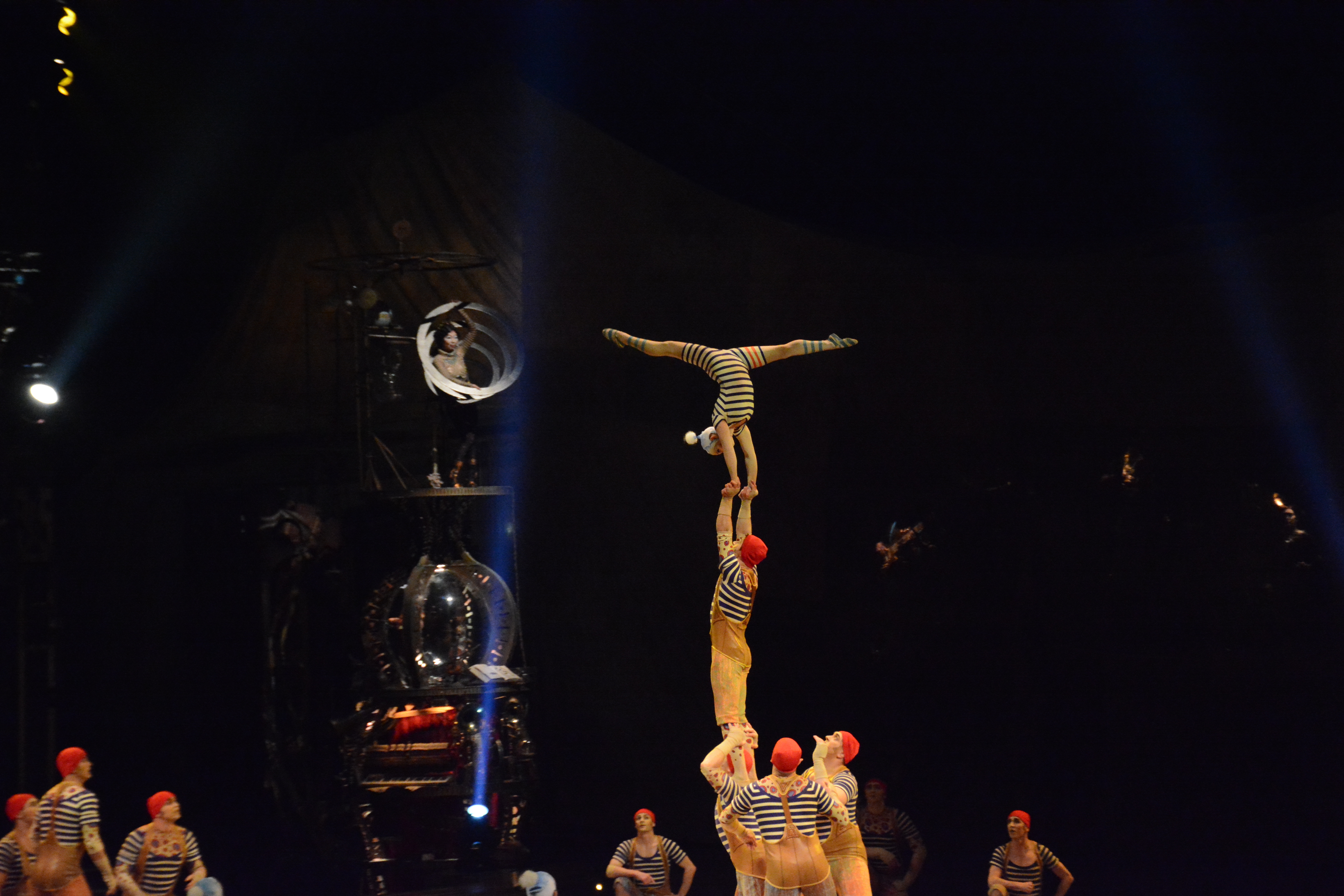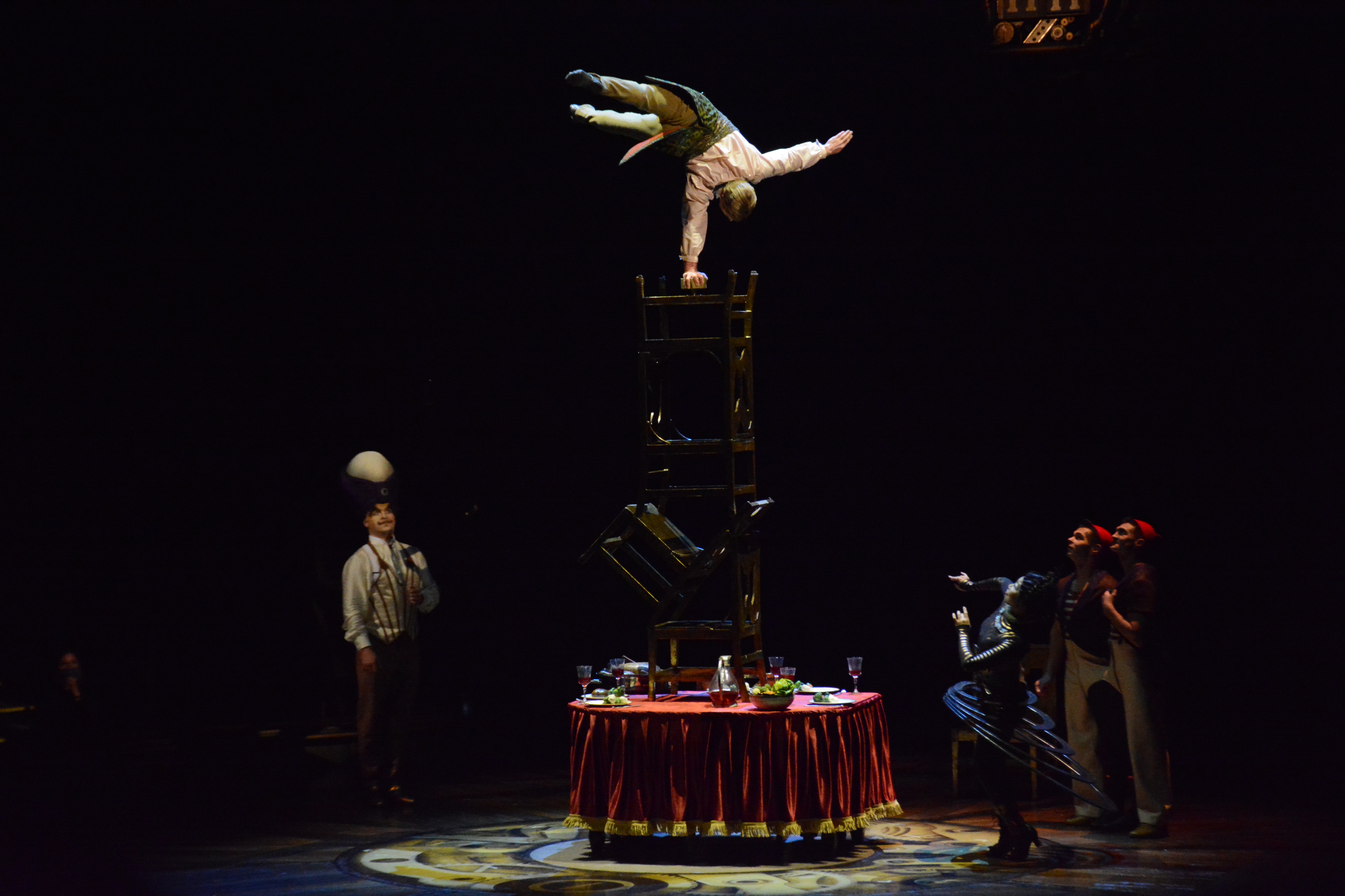 Since most of the performances are done on independent structures, it gave tthe audience more focus on the acts performing on the structures. The wooden floors of Kurios’ stage and the panels of wood were made from silicone from molds made from century old planks. Many of the stage and structures were made from recycled parts from various junkyards and fused together with various pipes and tubes.