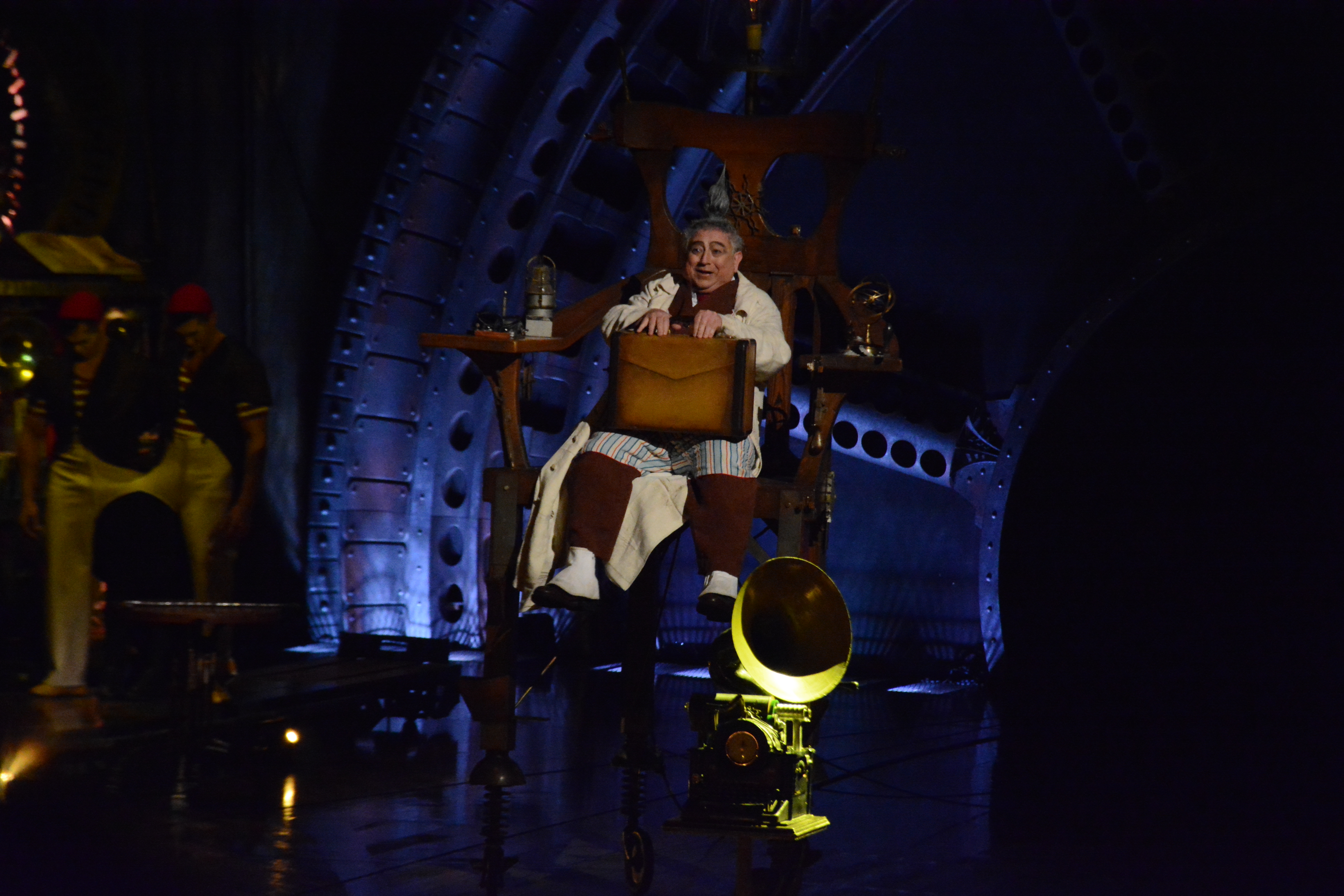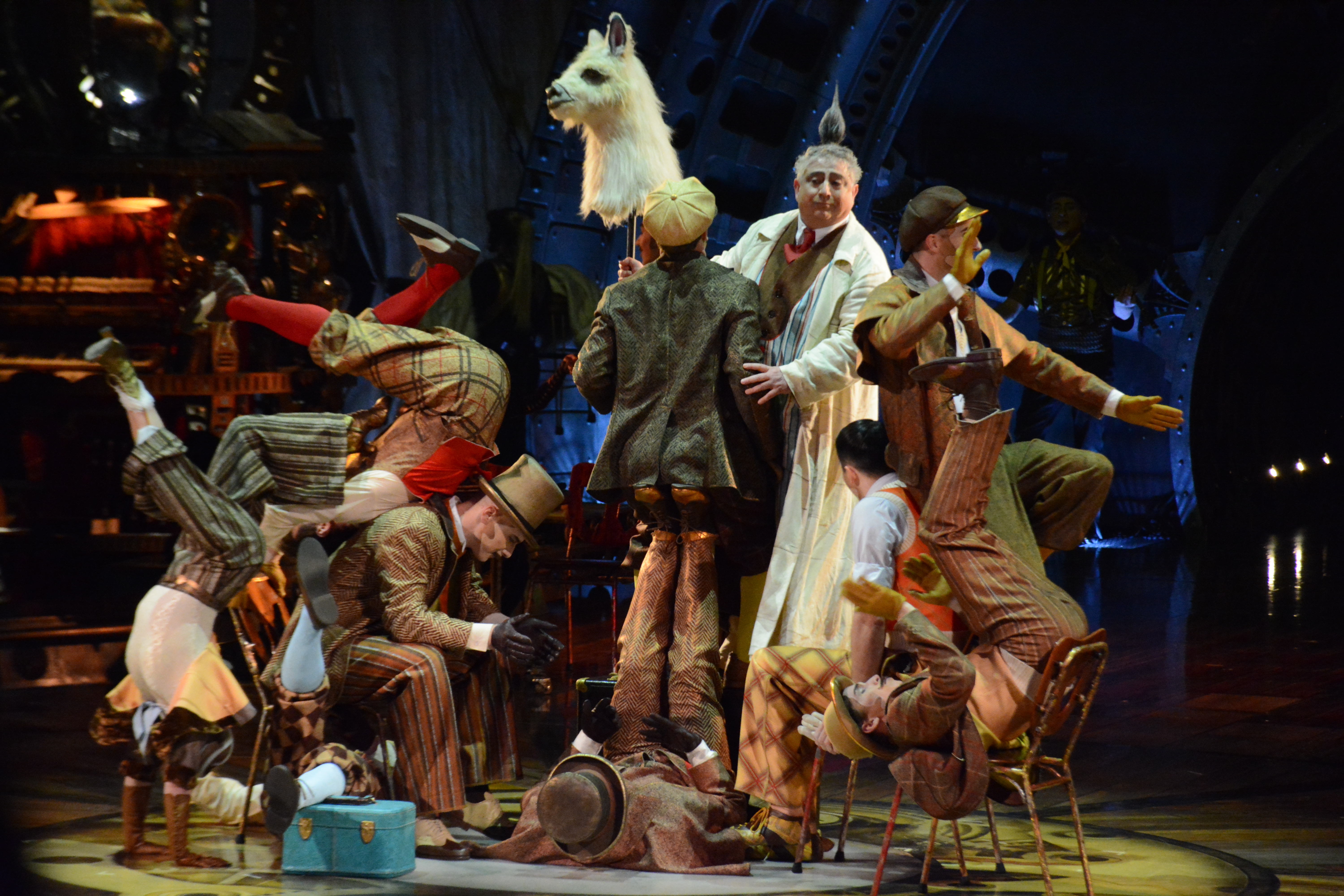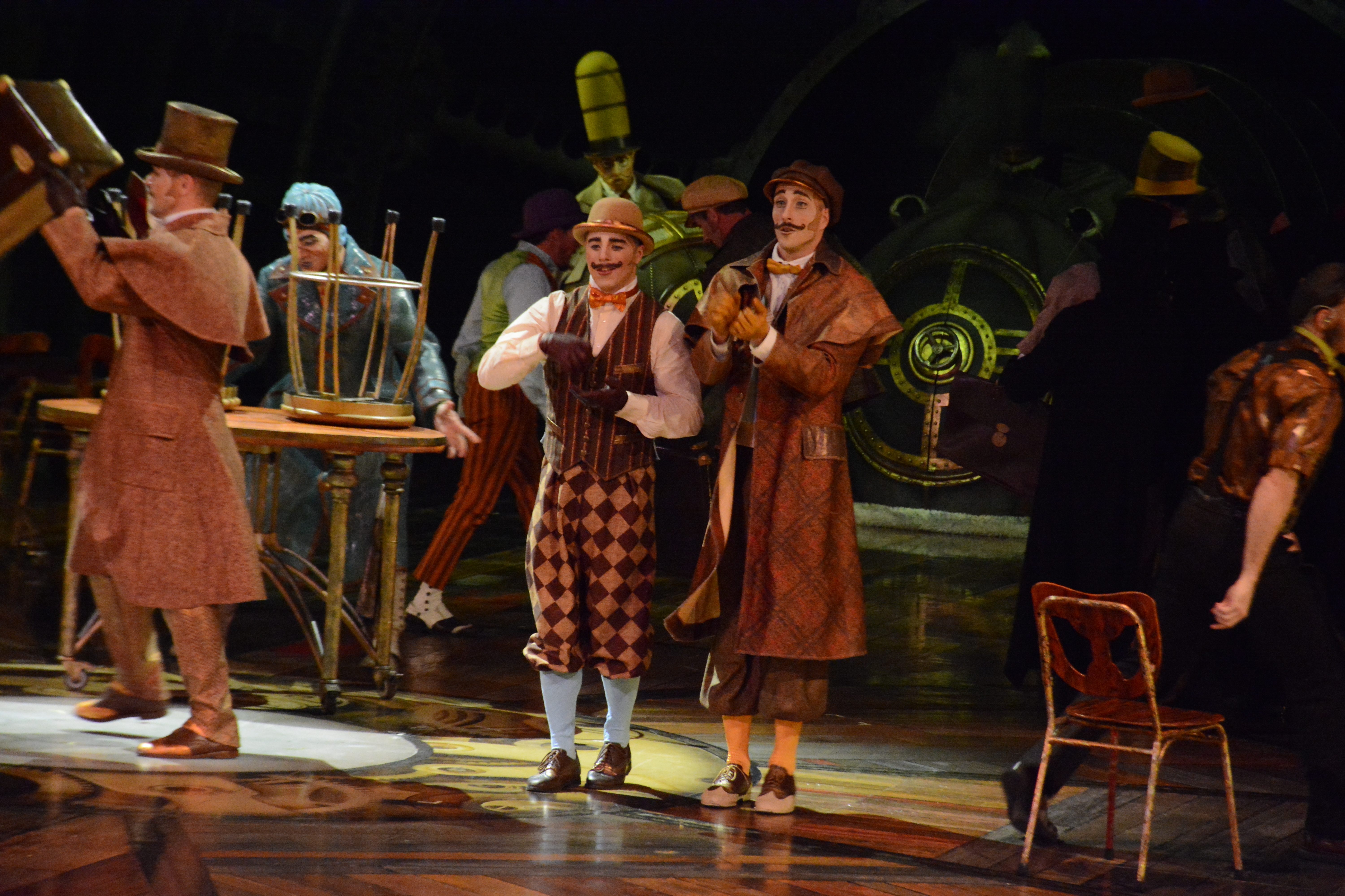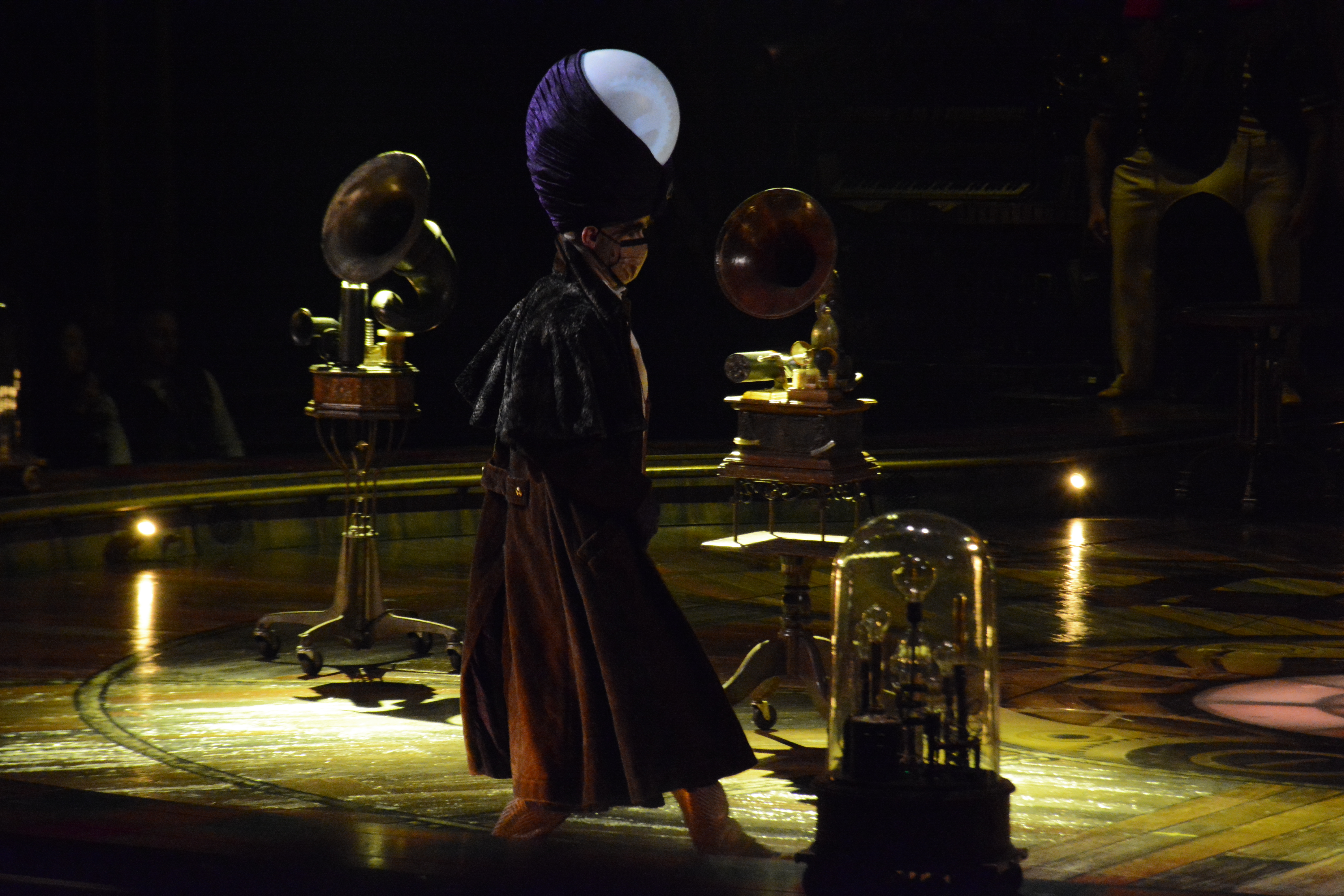 The set and props used in Kurios are inspired by steampunk and retro-future. The set makes several references to the industrial revolution and early 19th century without it being tied to that period. Set designer Stéphane Roy describes it as, “It’s like Jules Verne meets Thomas Edison in an alternate reality, out of time.”