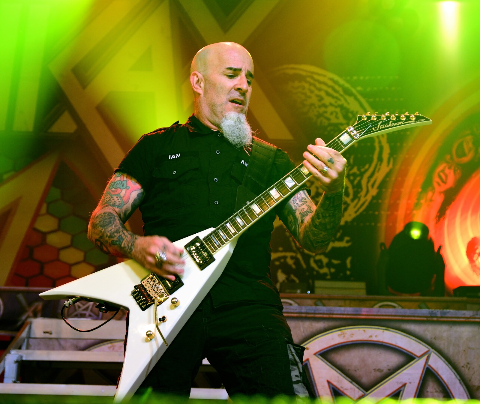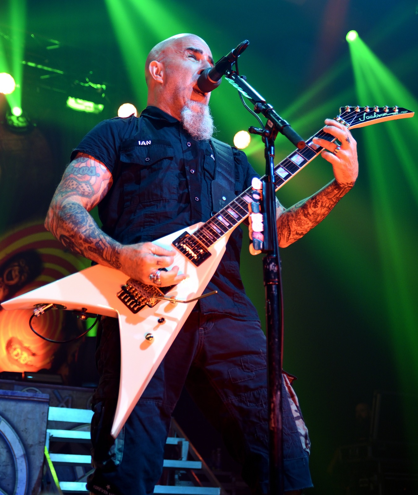 Anthrax: Scott Ian-Guitar, Charlie Benante-Drums, Frank Bello-Bass, Joey Belladonna-Vocals and Jonathan Donais-Guitar.
