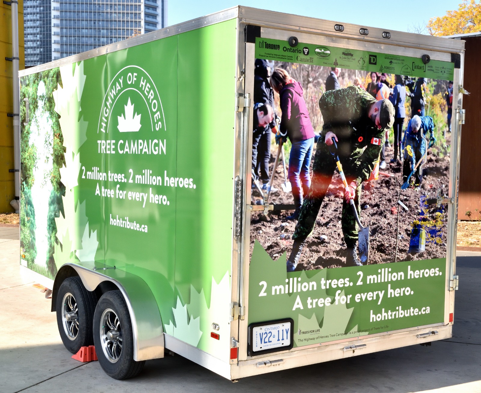 The Highway of Heroes Tree Campaign is funded by Veterans Affairs Canada, the Government of Ontario, Cullen’s Foods, Landscape Ontario, Forests Ontario, Ontario Trillium Foundation, TD Bank, the City of Toronto, Intact Public Entities, the City of Quinte West, Harrington & Associates, Rotary District 7070, Maple Leaves Forever, and the Garden Club of Toronto. To learn more, visit www.hohtribute.ca.