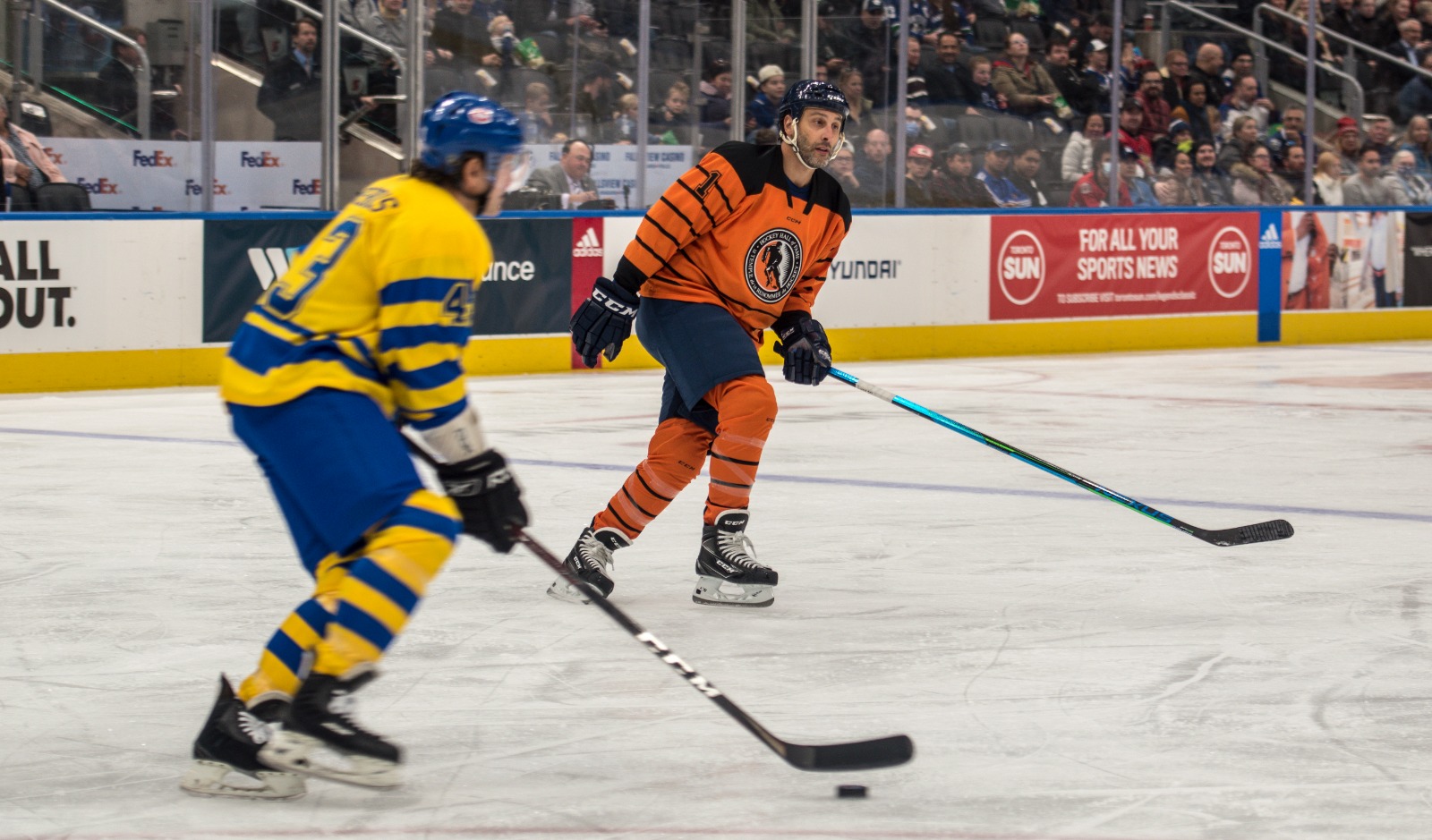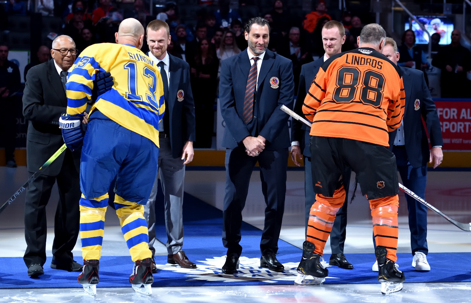 The Hockey Hall of Fame Legends Classic game at Scotiabank Arena was a fun filled afternoon. Mats Sundin brought in Jason Spezza as his sniper; but they lost to Roberto Luongo’s /Eric Lindros’ team 10-6.