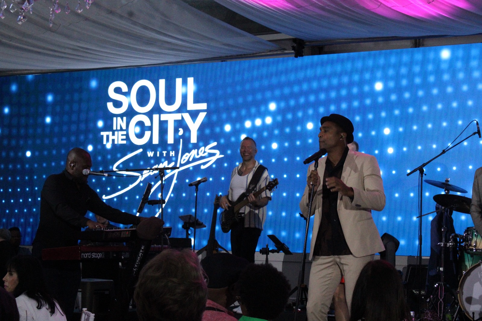 Call My Name and What Do I Got To Do? The audience loved him, his music and his warm R&B vibe. A gifted performer. All three fantastic singers and examples of musicians Toronto proudly produces. An evening with Sean Jones Soul in the City is an amazing experience. Highly recommended. Rain didn’t stop anyone… The sold-out crowd loved it. Every single minute! Tuesday evenings throughout the summer at Casa Loma Toronto.