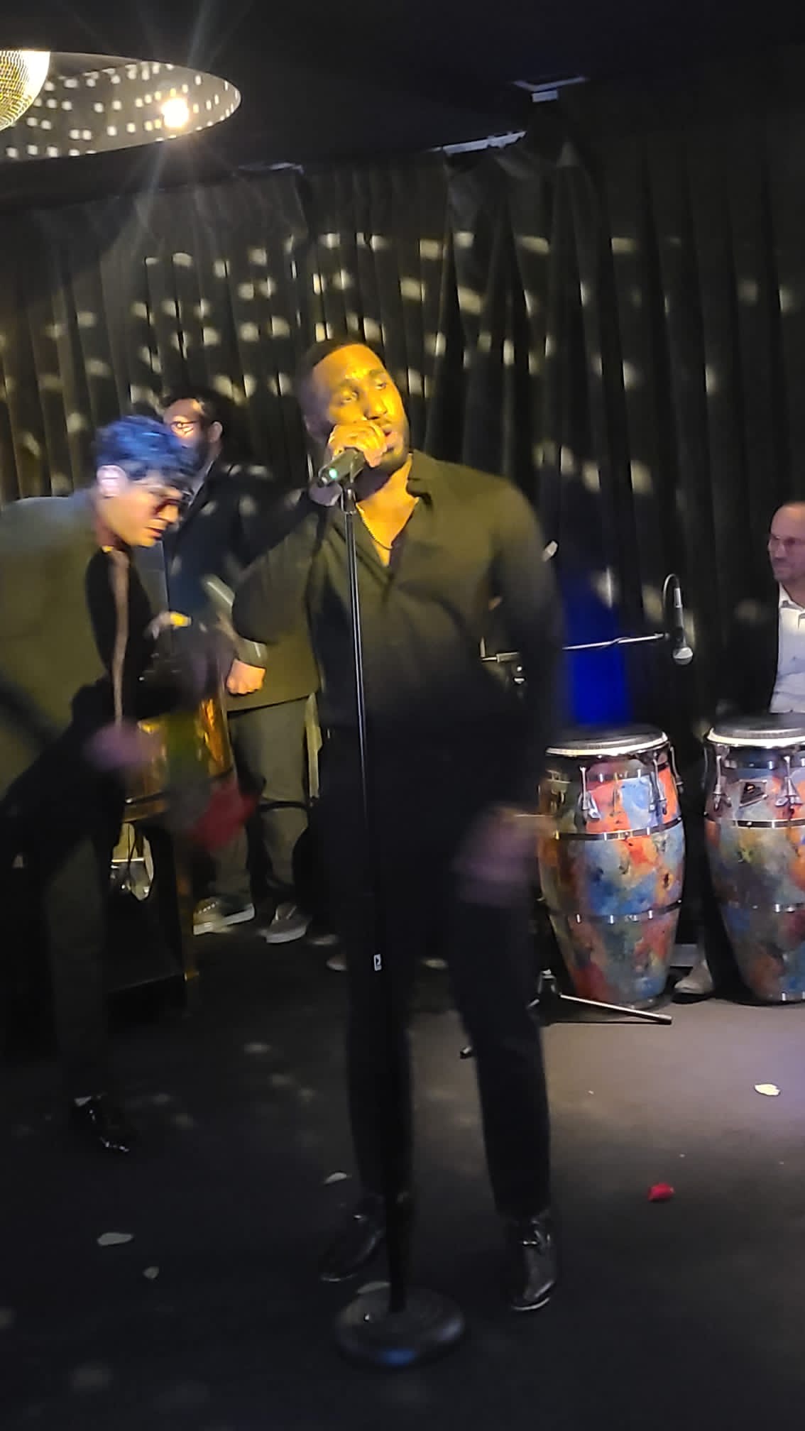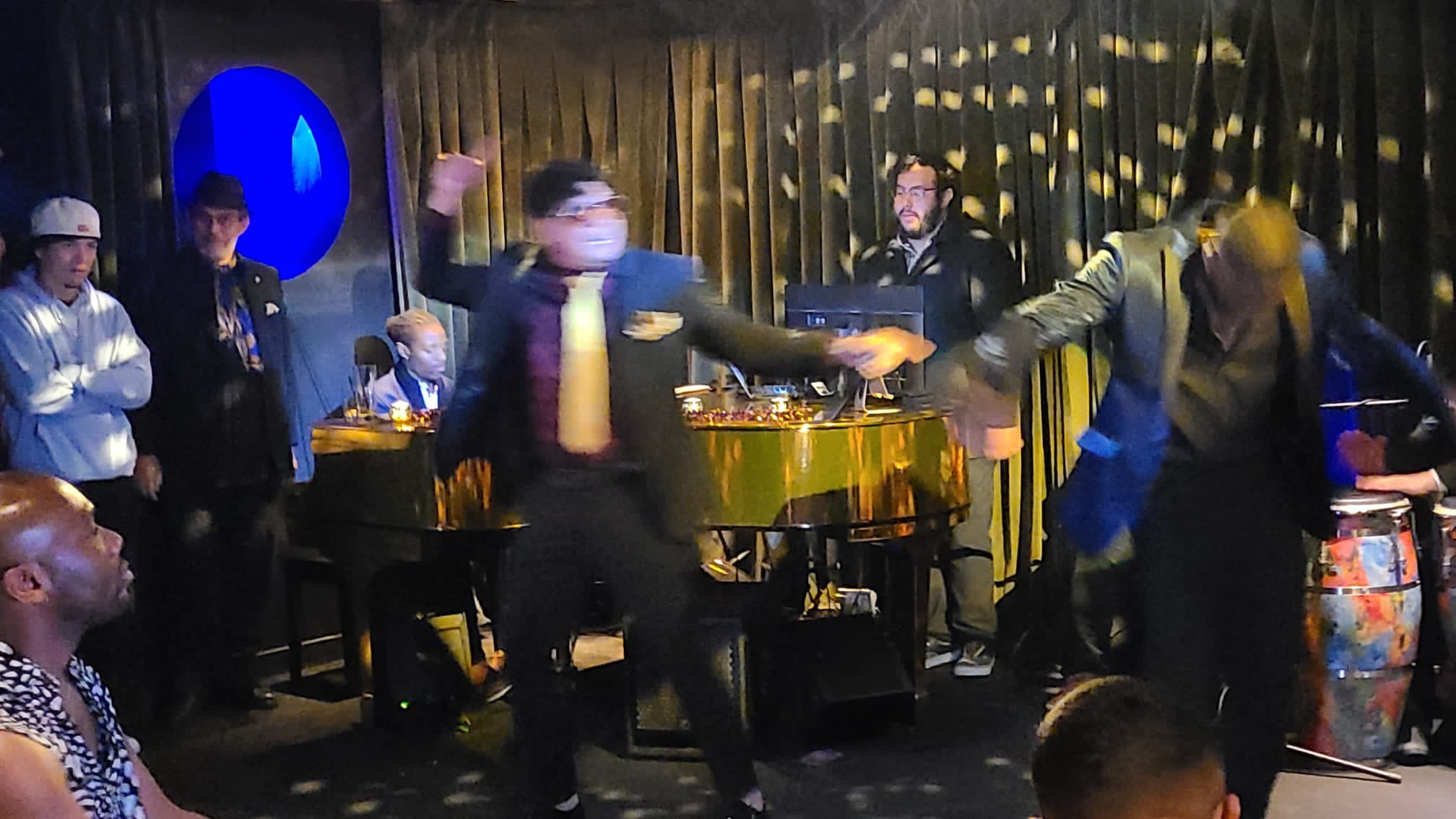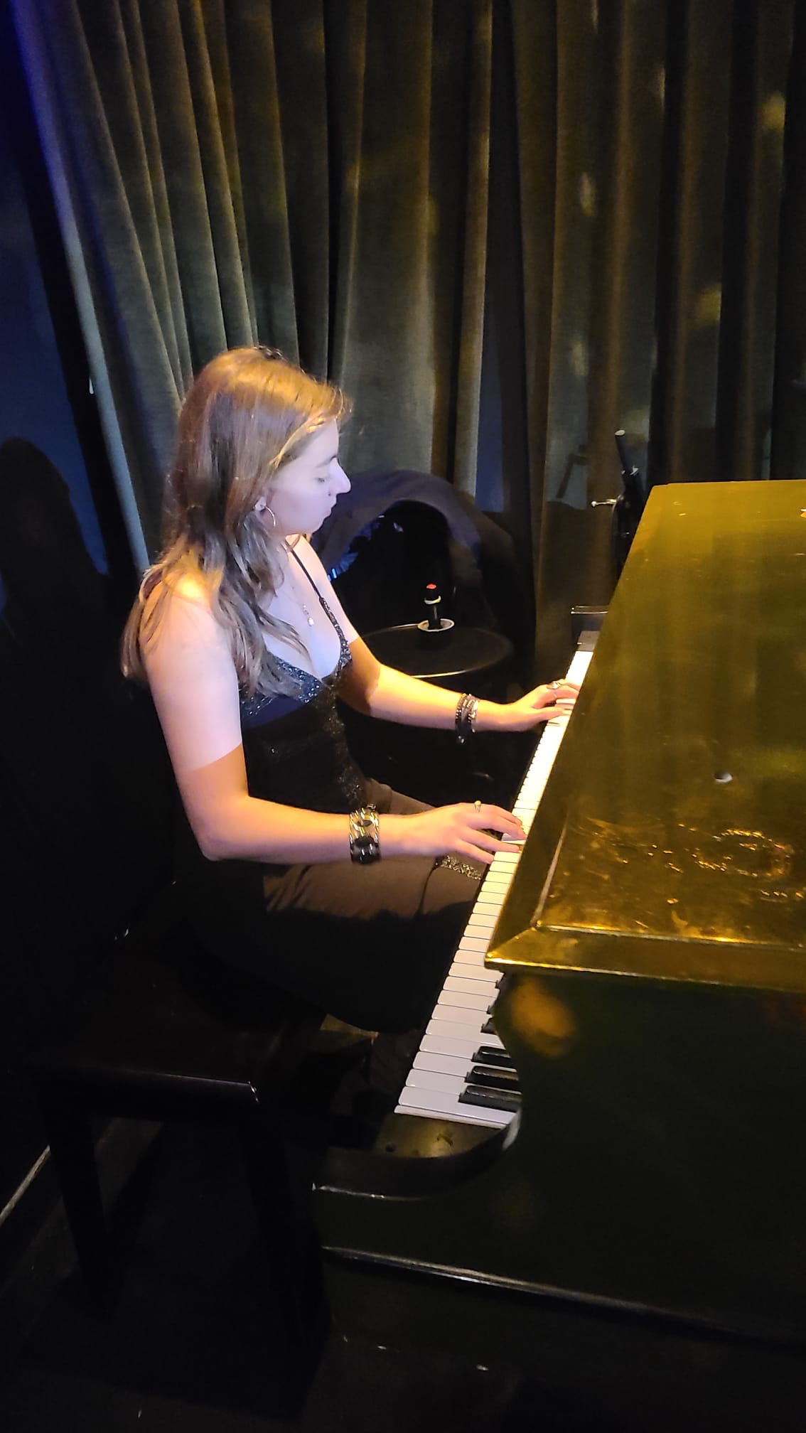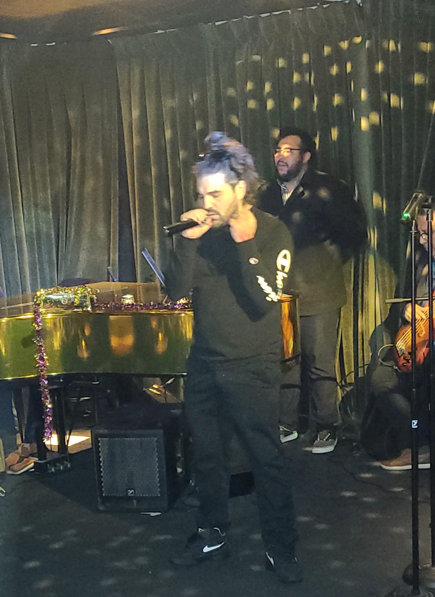 Sunday night was a Latino music one! The Holiday Soirée was held at Jean Darlene Piano Room on Dundas West Street just west of Ossington in Toronto. The venue is located on the second floor and the unique entrance is from the back laneway. Jean Darlene Piano Room is a cozy venue with …you guessed it!… a gorgeous piano waiting to be played! Comfortable couches for relaxing and a fully stocked bar with friendly staff.
