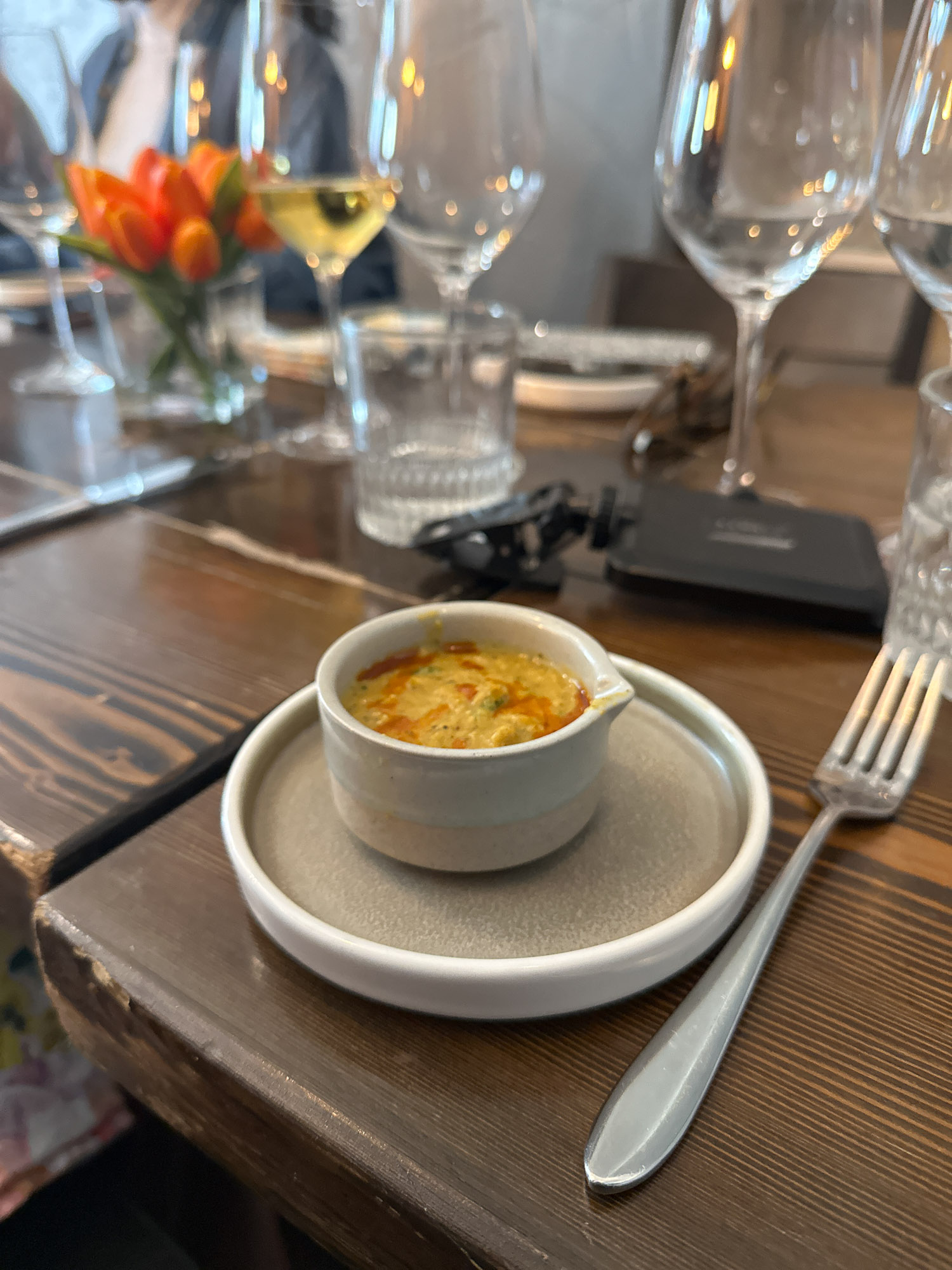 Chef Rachel shared that hibiscus, originating from Northeast Africa, has made its mark globally, and has a beautiful way of standing out in any space. Its floral and herbaceous notes gracefully permeated through the flatbread, chutney, and curry, enhancing the overall experience. The velvety tenderness of shank and cheek stewed together provided a decadently rich and satisfying indulgence. Completing the dish was a thoughtfully chosen root pairing of clove and nutmeg, harmonizing flawlessly with a merlot that transported us to the sun-kissed vineyards of the South of France.