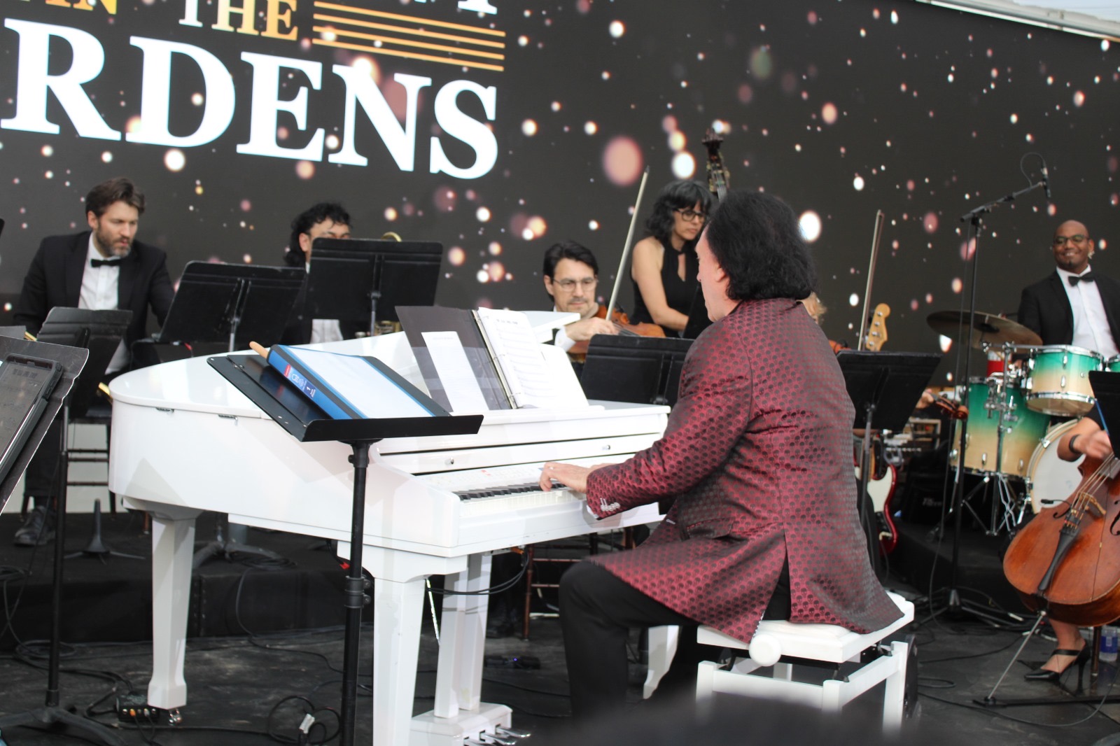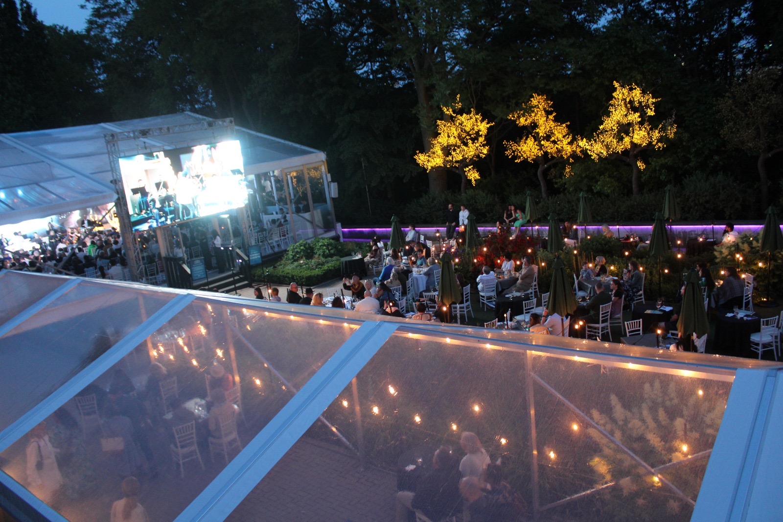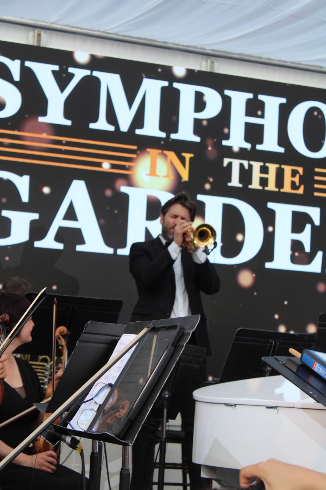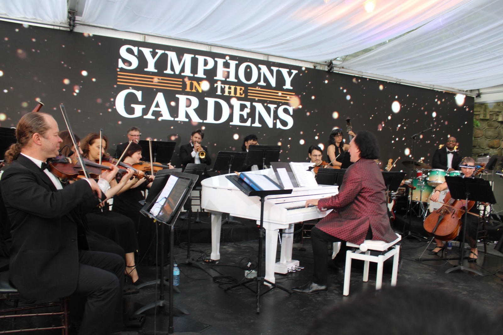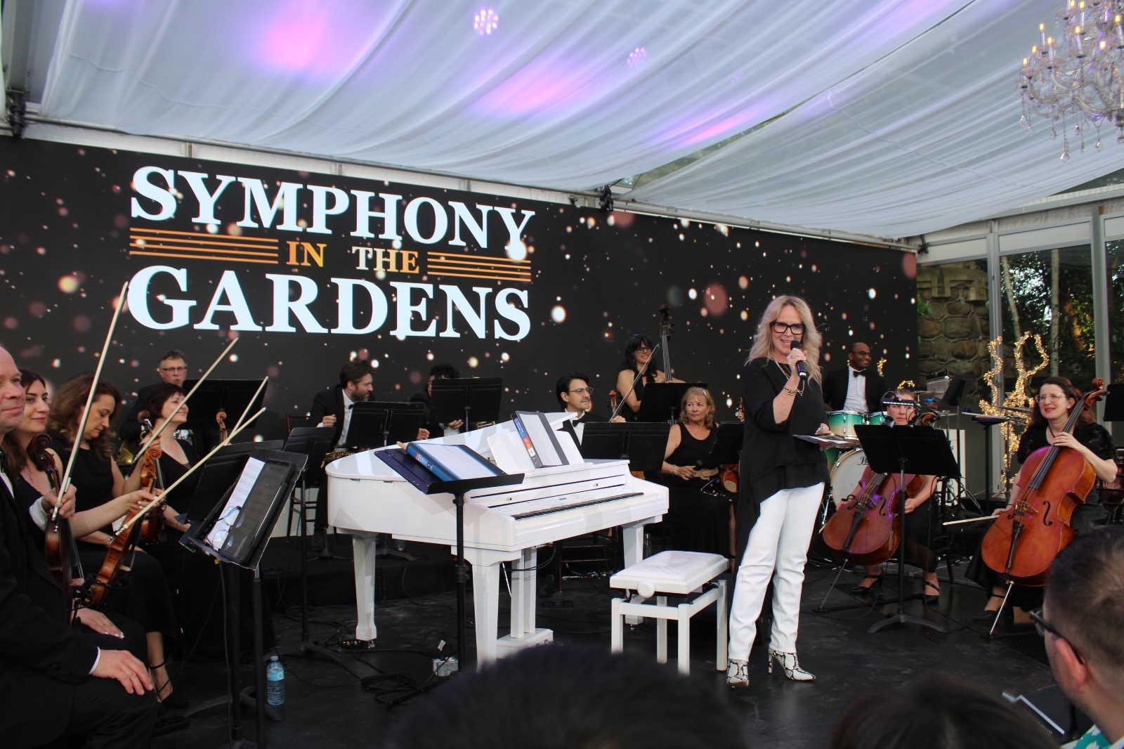 Opening night of the Symphony in the Gardens was June 3rd. It was a beautiful evening with guests ready for the start of summer and enjoying the outdoors with a drink or dinner and then the wonderful music of Maestro Paolo Busato and The Casa Loma Symphony Orchestra. The music theme of the evening was ‘Let’s Go to The Movies’ Music scores from 10 films ranging from Jurassic Park, Fortnite Spies, Star Wars to the Titanic, to name a few. Music was beautiful and made everyone reminisce about their favourite films. Inside the tented glassed area – sitting very closely to others, the sold out crowd loved every minute of the music, venue, drinks and food.