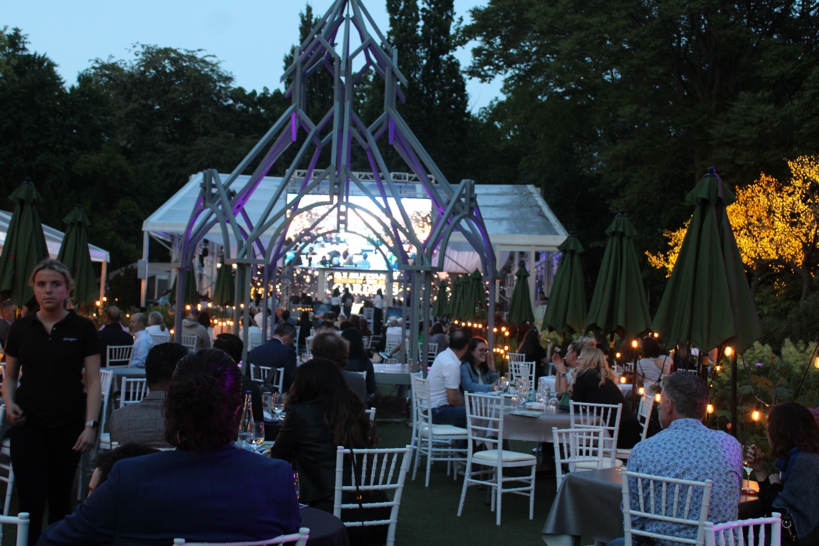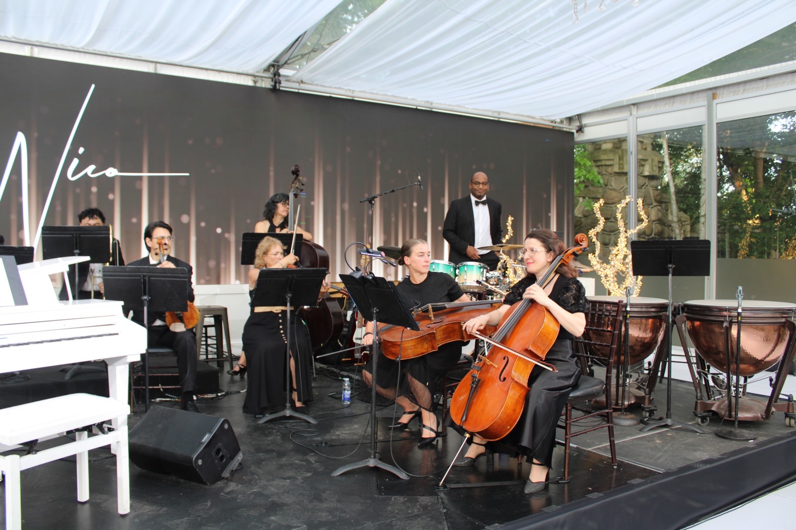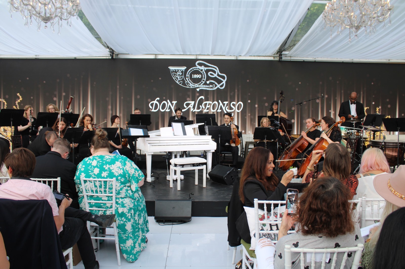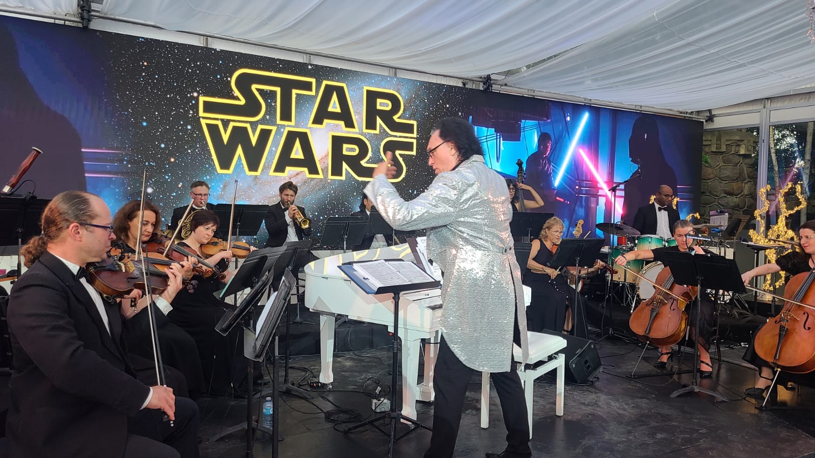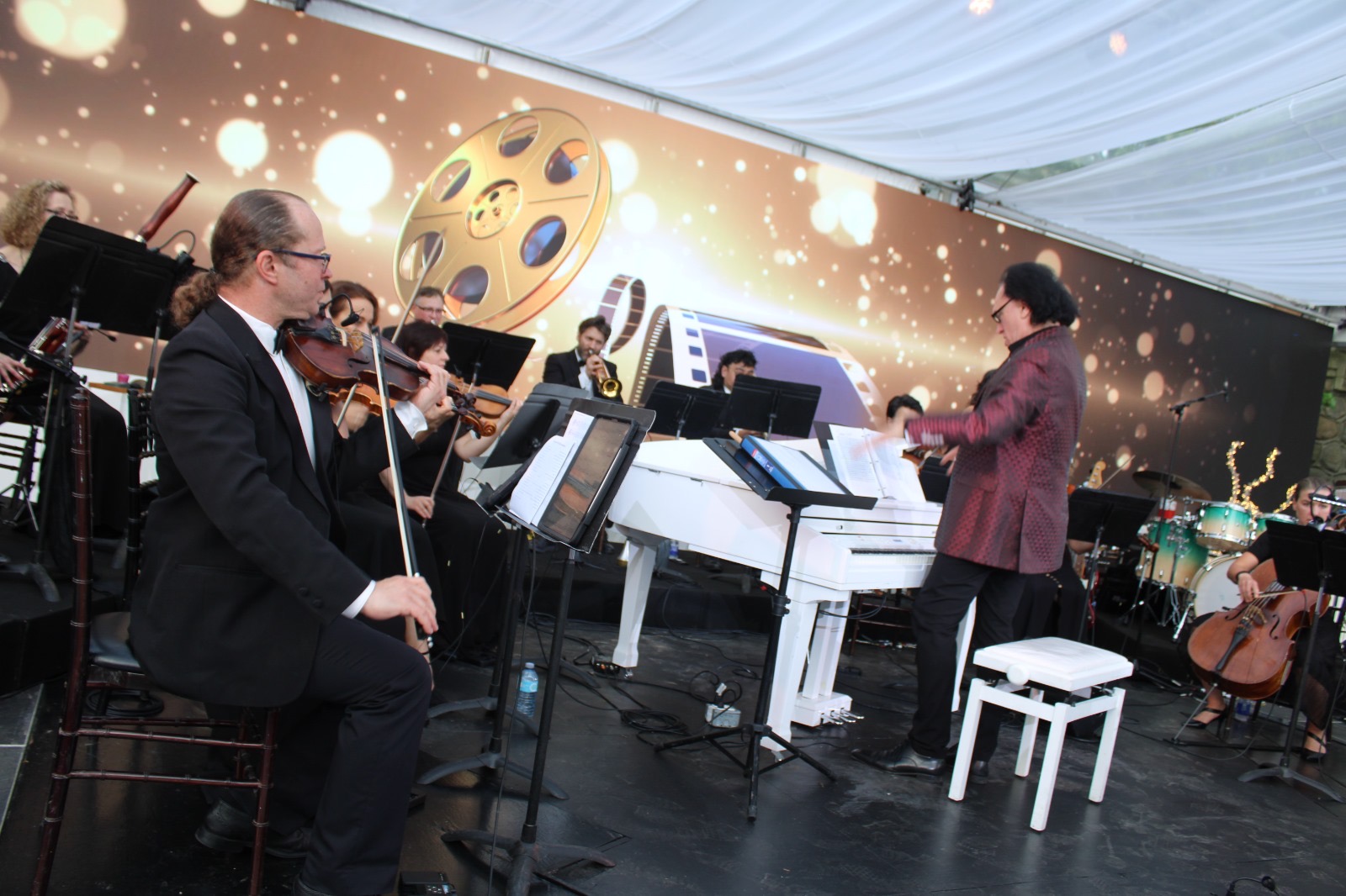 Opening night of the Symphony in the Gardens was June 3rd. It was a beautiful evening with guests ready for the start of summer and enjoying the outdoors with a drink or dinner and then the wonderful music of Maestro Paolo Busato and The Casa Loma Symphony Orchestra. The music theme of the evening was ‘Let’s Go to The Movies’ Music scores from 10 films ranging from Jurassic Park, Fortnite Spies, Star Wars to the Titanic, to name a few. Music was beautiful and made everyone reminisce about their favourite films. Inside the tented glassed area – sitting very closely to others, the sold out crowd loved every minute of the music, venue, drinks and food.