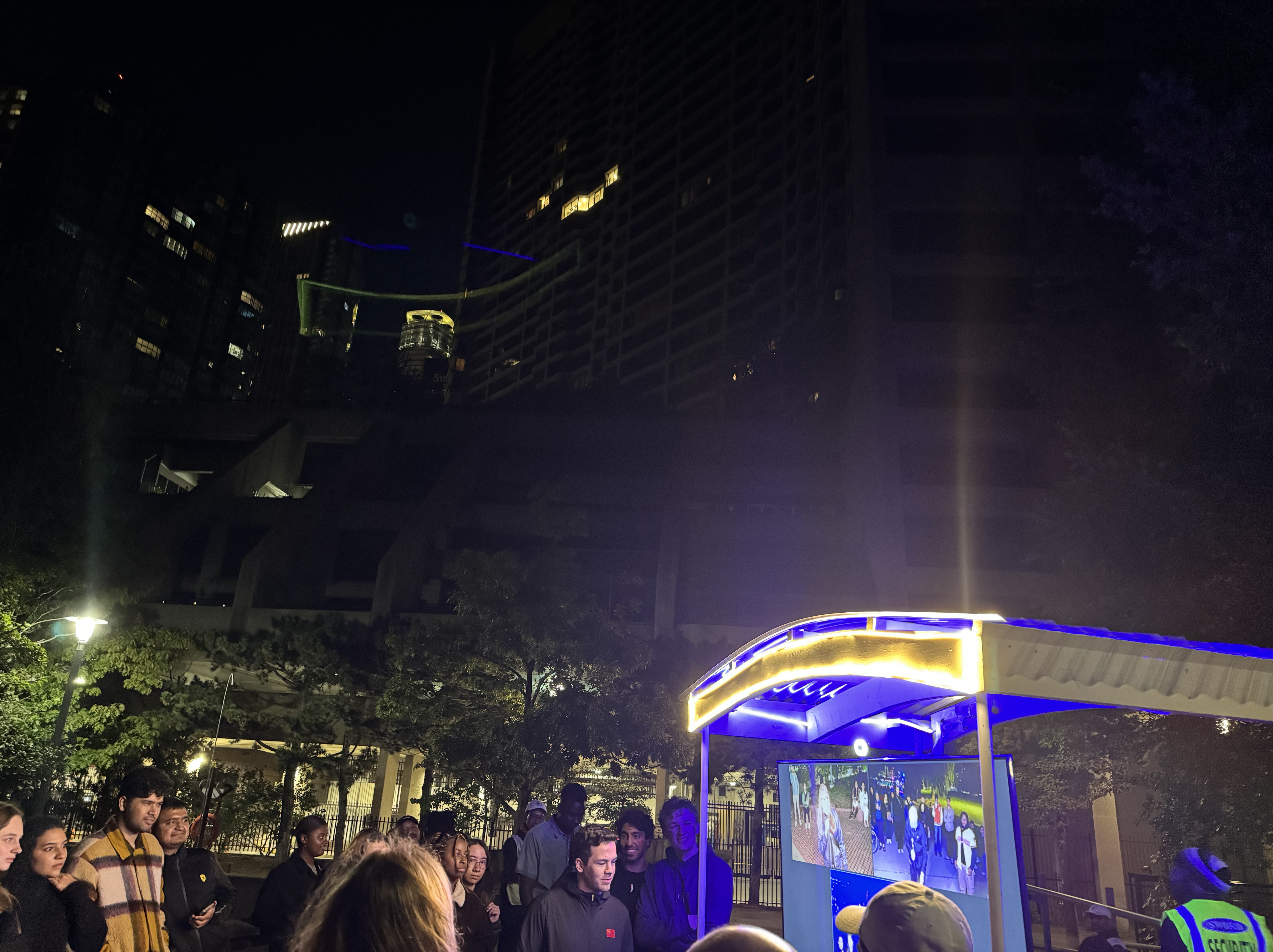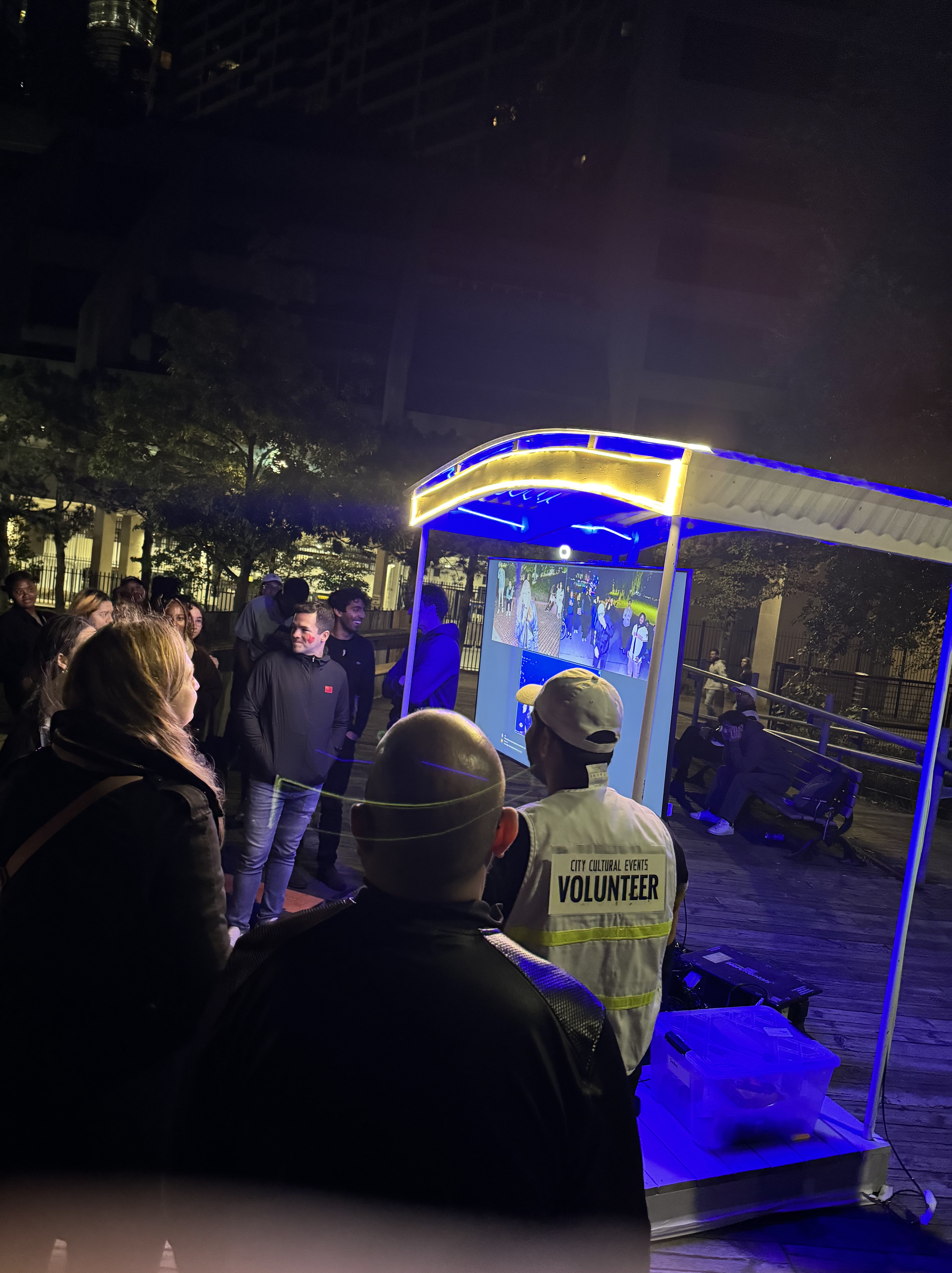 The Lake Ontario space was used for-Projection on water with some creative visuals,as guest stood by the edge of the dock area to view this presentation by a large group of people.