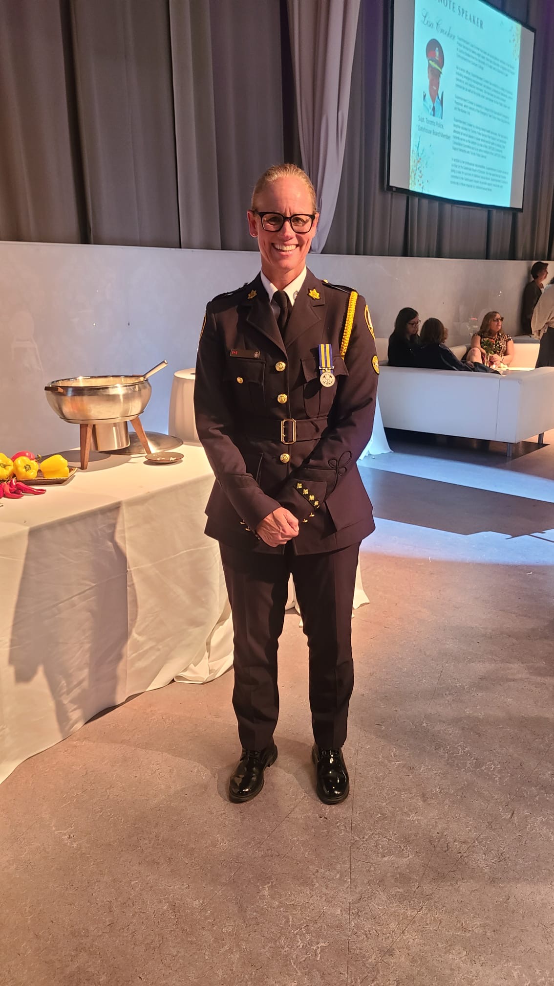 After the talks was a Live Auction by Ryan sponsored by Corporate Assets. Auction items such as Air Canada flights, artwork, and other items raised lots of funds for The Gatehouse. Throughout the evening guests enjoyed hors-d’oeuvre and a drink from the bar. Later the dinner buffet was available with delicious salad items, sliders with different meats, delicious meat dish with rice, a pasta bar and a dessert table with a selection of treats. All very good. Among the guests were Humber College students in the police program. The Police were also guests attending the event. It was a really nice evening supporting an excellent cause which is very much needed in the community. For more information https://thegatehouse.org/