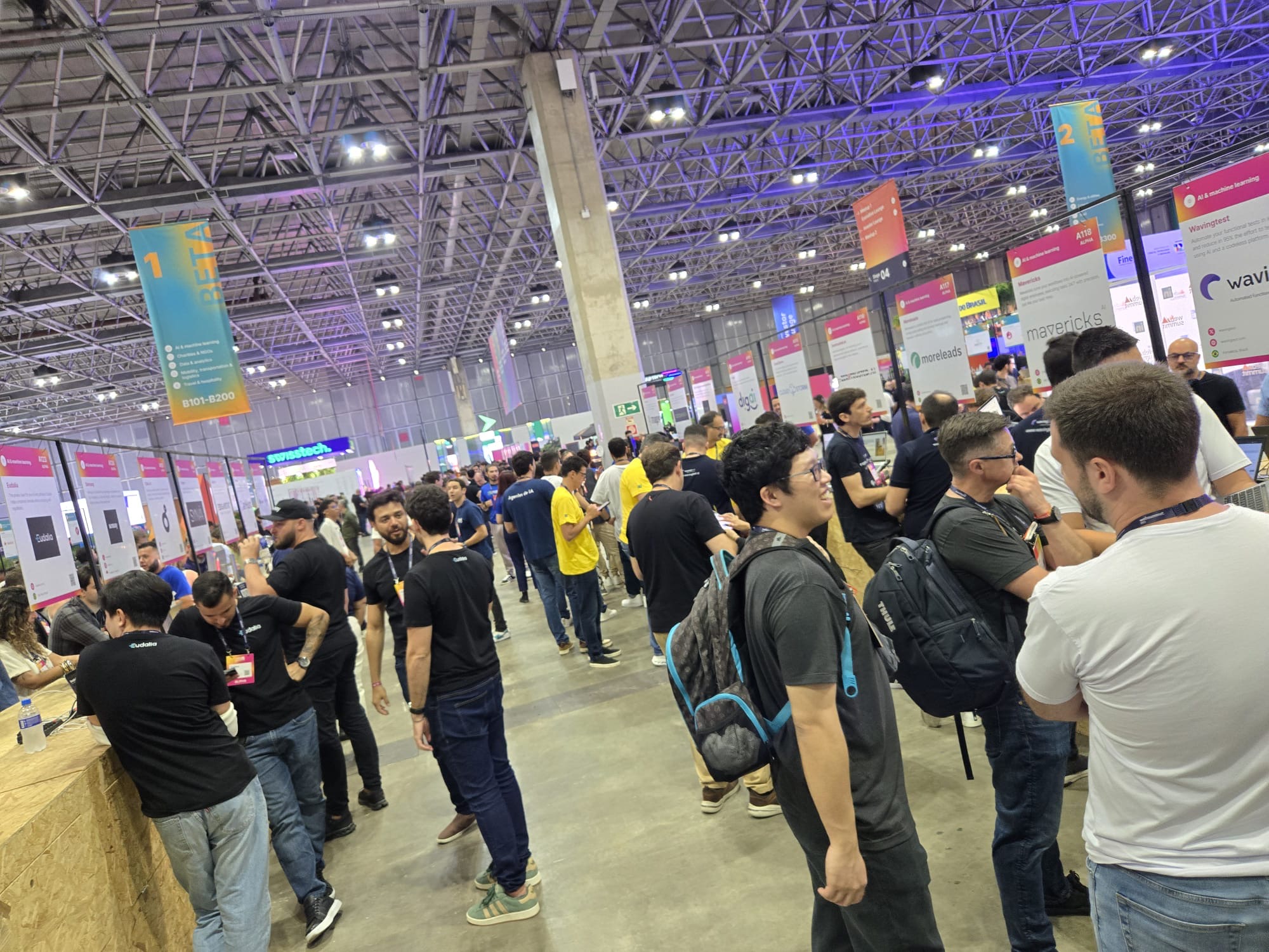 In the pavilions were Investors Lounge, Networking areas, Community Space, Speakers’ Lounge, Pitch stages, Women in Tech area, Mentors Hours, Master Class sessions, Roundtable discussions. Startup booths set up in each of the pavilions were based on apps related to health, fitness, finance, travel, language acquisition, and many others. There were lots of helpful volunteers getting experience at this huge international tech event.