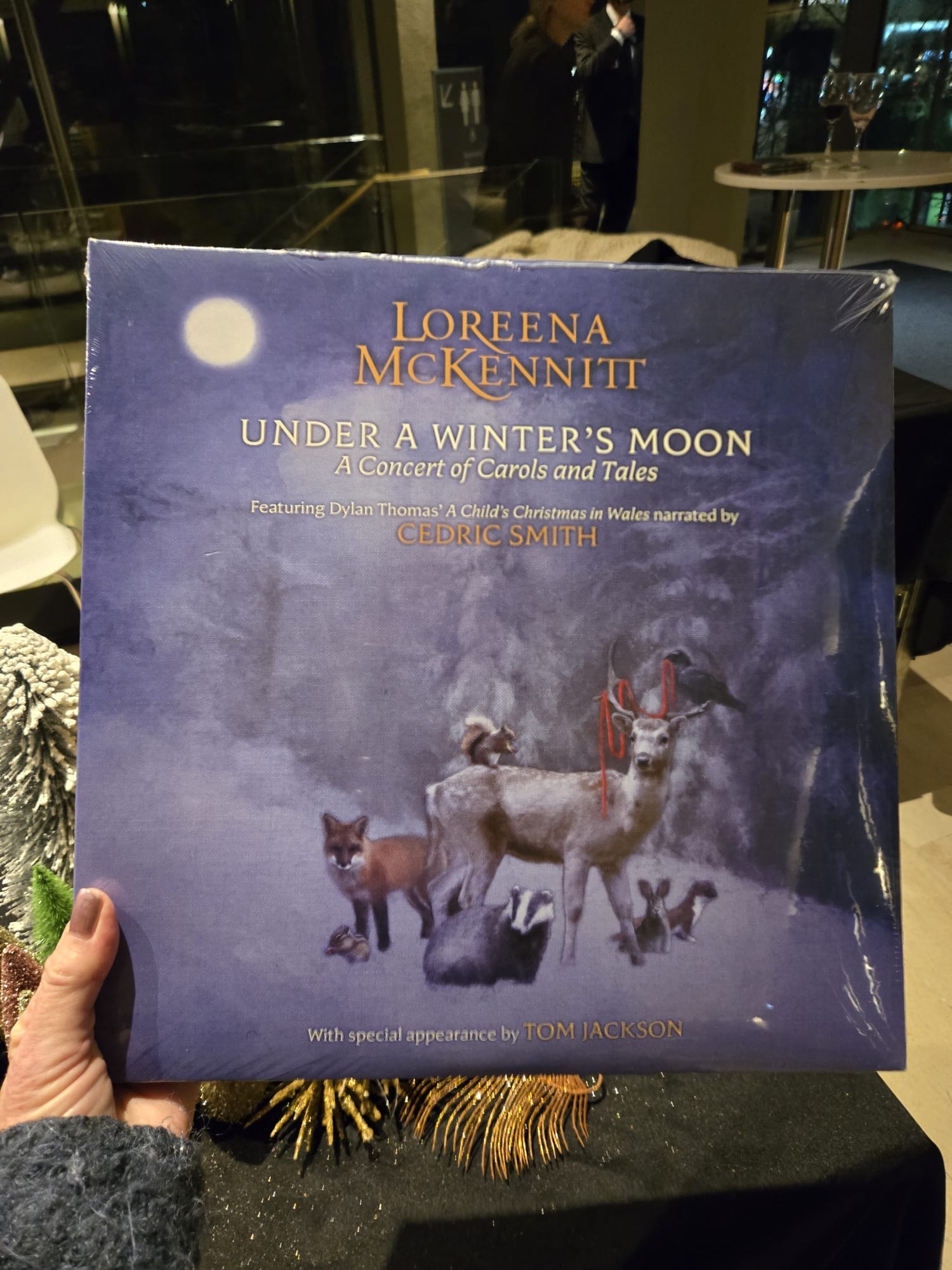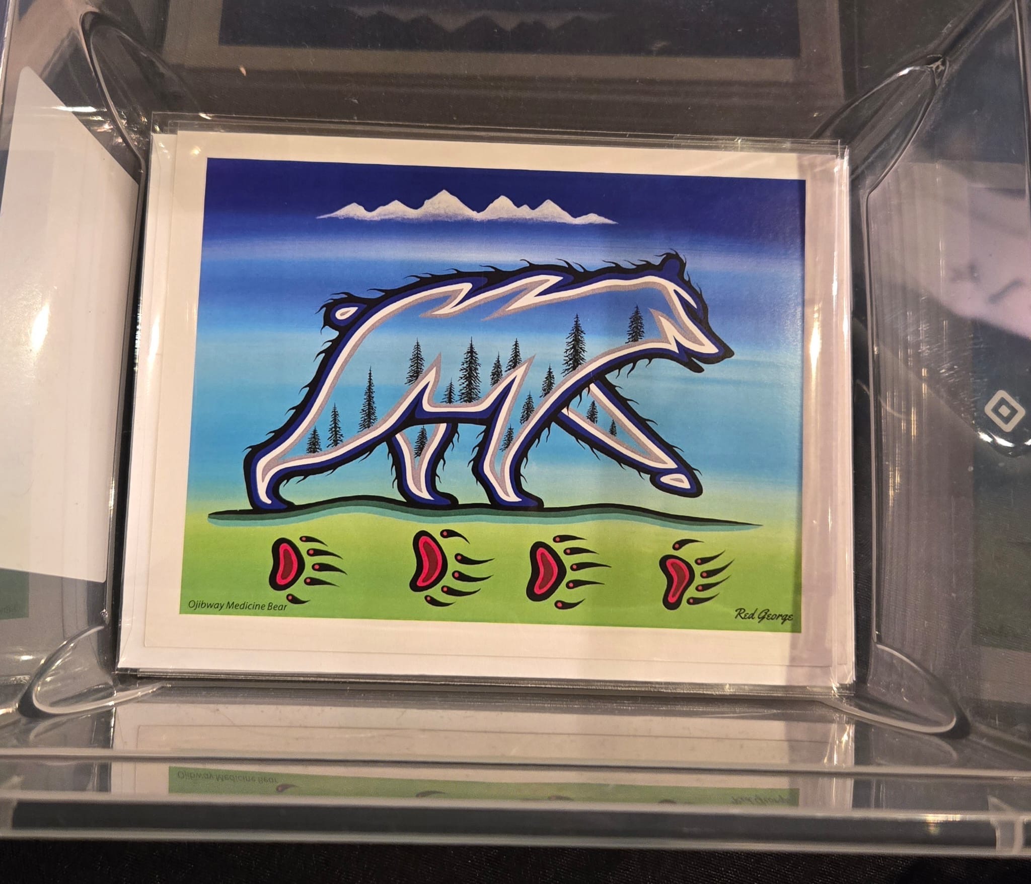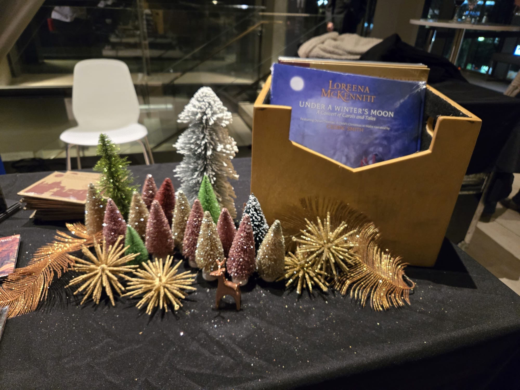 For sale in Koerner Hall’s foyer area (with its bar and gorgeous view of the outdoors) for sale were McKennitt’s albums and CD’s. Beautiful cards created by Indigenous artist Jeffrey “Red” George were also available for sale.