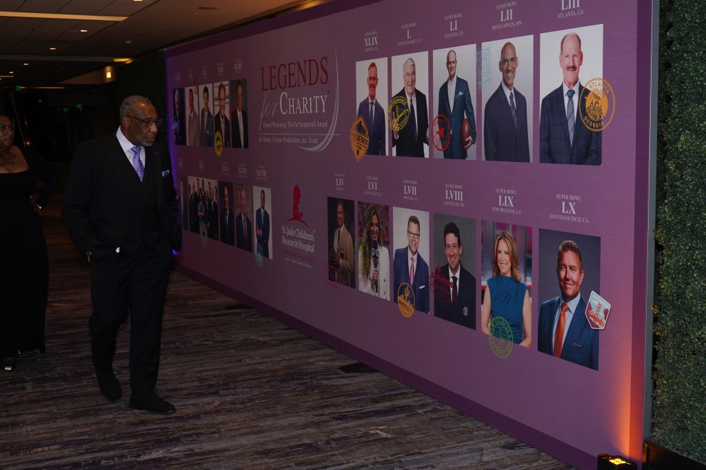 It was The Legends for Charity gala and dinner benefiting St. Jude Children’s Research Hospital. It took place during Super Bowl LX week on Thursday, February 5, 2026 in San Francisco’s Marriott Marquis. The event featured the presentation of the 2026 Pat Summerall Award to ESPN/ABC and Amazon Prime Video analyst, Kirk Herbstreit who was the 20th Annual Pat Summerall Award recipient, plus he accompanied by his beloved golden retriever, Peter.