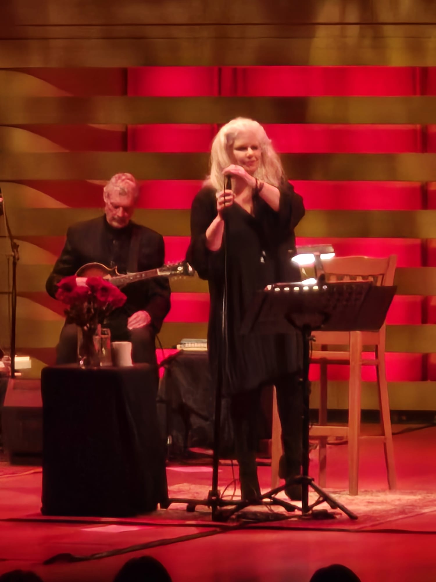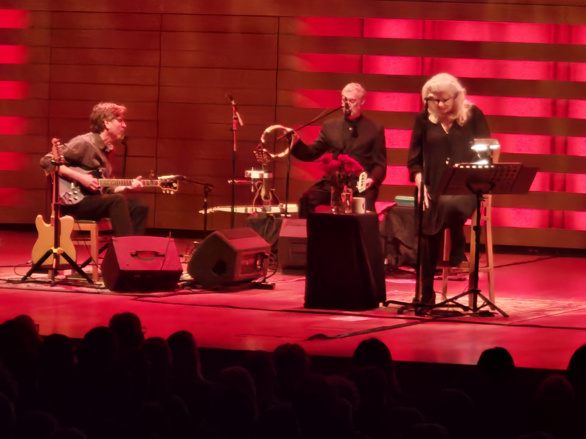 The band’s chemistry on stage was that of appreciation of what each musician contributes. The Cowboy Junkies have been described as “One of the most unique and enduring bands in alternative rock.” Margo Timmins voice has been described as as melancholy and enchanting as ever. Her beautiful voice is said to be able to miraculously fit with all the pained lyrics written by her brother Michael Timmins. And the evening was one of listening to truly transformative music. Calmness and reflection were the words to describe the concert. The audience loved hearing this career- spanning show with songs from their albums The Trinity Session to their recent album, Such Ferocious Beauty. The fans also loved hearing “Sweet Jane”, one of The Cowboy Junkies’ most popular and beloved songs, originally written by Lou Reed and performed by his band, The Velvet Underground.