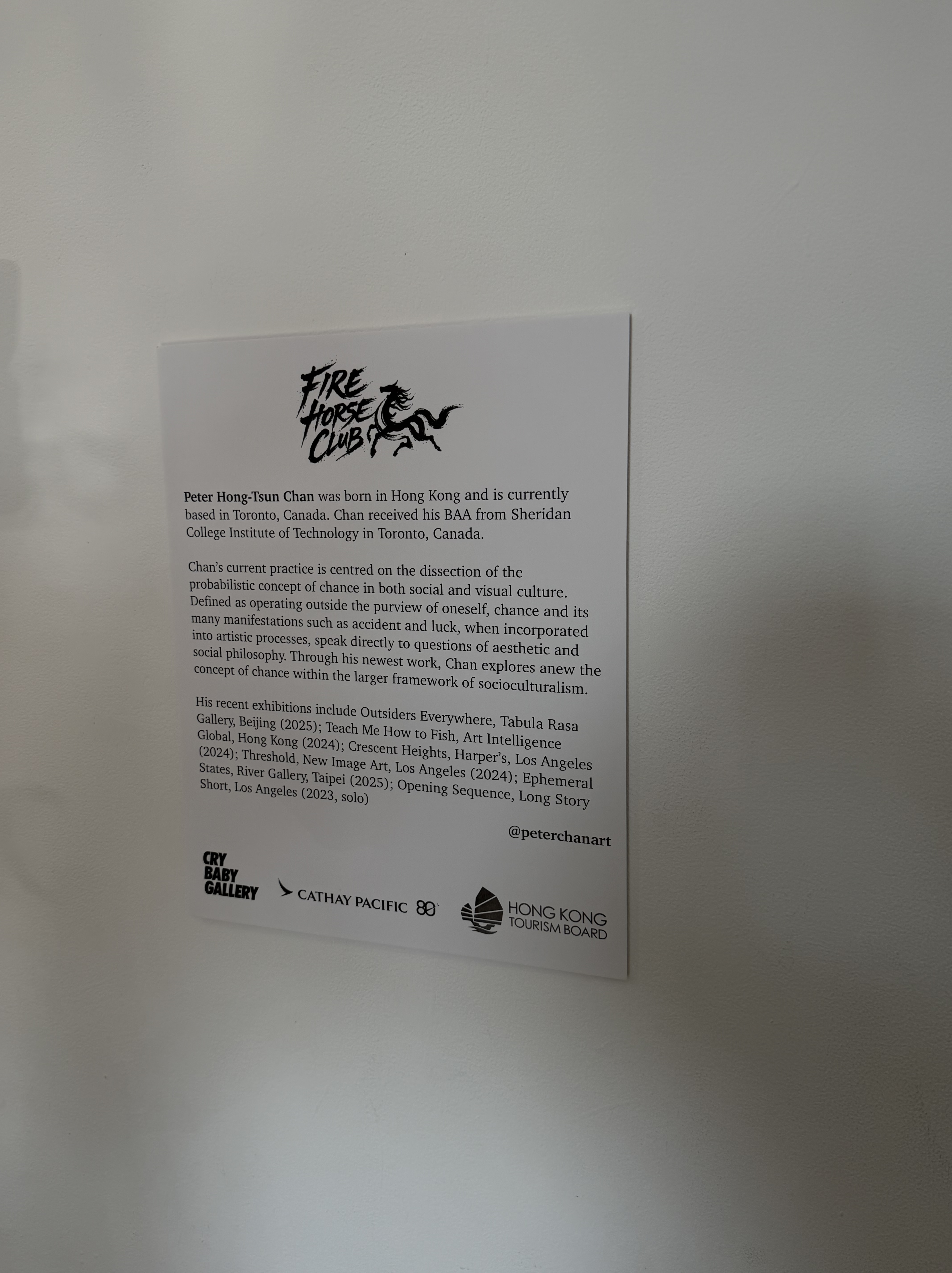 Fire Horse Club spotlighted new work by Toronto-based, internationally recognized artist Peter Chan. Drawing on Hong Kong visual culture, calligraphy, symbolism, and identity, Chan reinterprets tradition through a contemporary lens—balancing precision with emotion to explore heritage, aspiration, and self-definition.