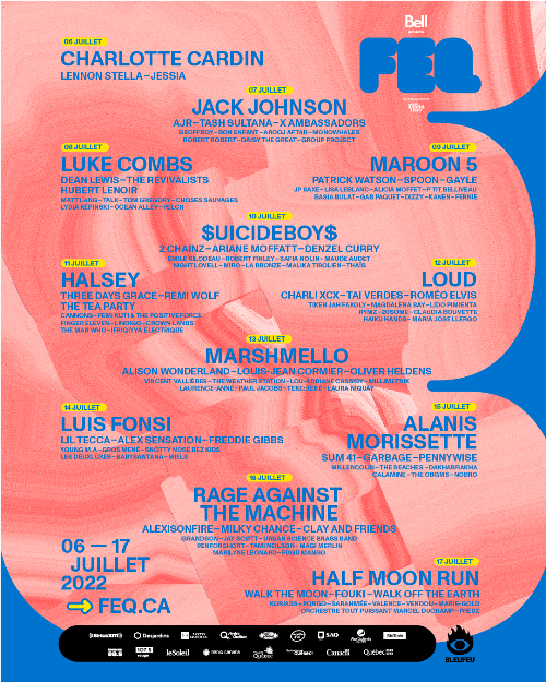 Festival d’été de Québec (FEQ) is pleased to announce the 2022 line-up featuring Rage Against the Machine, 2 Chainz, Alanis Morissette, Charli XCX, Denzel Curry and more. This year marks the festivals first edition since 2019, and has expanded to 12 days (July 6-17). Quite possibly the largest festival in North America, FEQ is anticipating over 300,000 attendees from all over the world, all touching down…